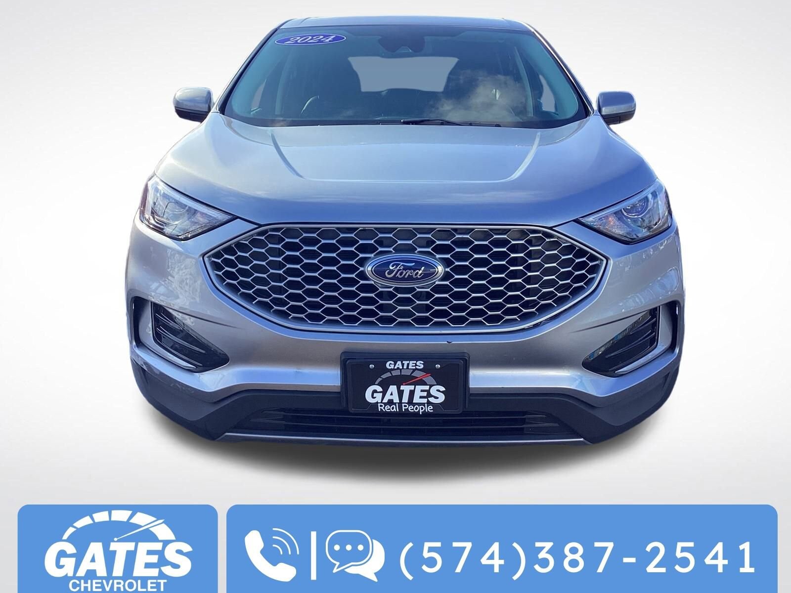 Iconic Silver Metallic 2024 Ford Edge SEL AWD 8-Speed Automatic EcoBoost 2.0L I4 GTDi DOHC Turbocharged VCT AWD, ABS brakes, Alloy wheels, Compass, Electronic Stability Control, Front dual zone A/C, Heated door mirrors, Heated front seats, Illuminated entry, Low tire pressure warning, Remote keyless entry, Traction control. This vehicle is located at Gates Chevrolet in South Bend. Call/text 574-387-2541 for more info. Recent Arrival! 21/28 City/Highway MPG.