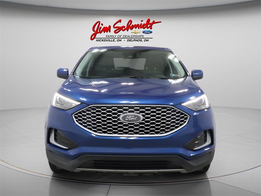 CARFAX One-Owner. Clean CARFAX. Atlas Blue Metallic 2024 Ford Edge SEL 21/28 City/Highway MPG http://www.realdeal.com/ Jim Schmidt Ford is located just inside the Ohio line on S R 2 in Hicksville, Ohio. We are a full service dealership providing our customers with bank financing and Service after the sale. Call one of our friendly and knowledgeable sales staff today.