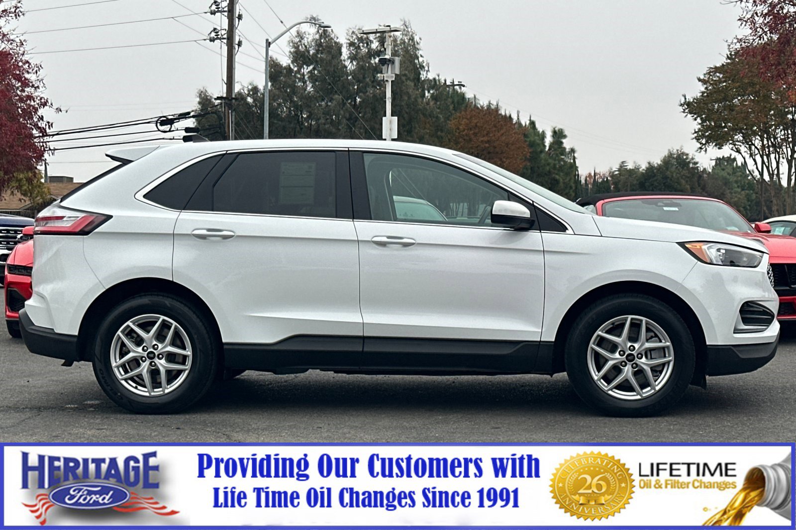 Boasts 28 Highway MPG and 21 City MPG! This Ford Edge boasts an intercooled turbo premium unleaded I-4 2.0 L/122 engine powering this automatic transmission. Outside temperature gauge, fade-to-off interior lighting, engine: twin-scroll 2.0L EcoBoost with auto start-stop technology. This Ford Edge features the following options. Wireless phone connectivity, SYNC 4A with enhanced voice recognition, 12" LCD capacitive touchscreen, cloud connected, Apple CarPlay and Android Auto compatibility, digital owners manual, adaptive dashcards and conversational voice command recognition. Stop by Heritage Ford located at 2100 Sisk Rd, Modesto, CA 95350 for a quick visit and a great vehicle!