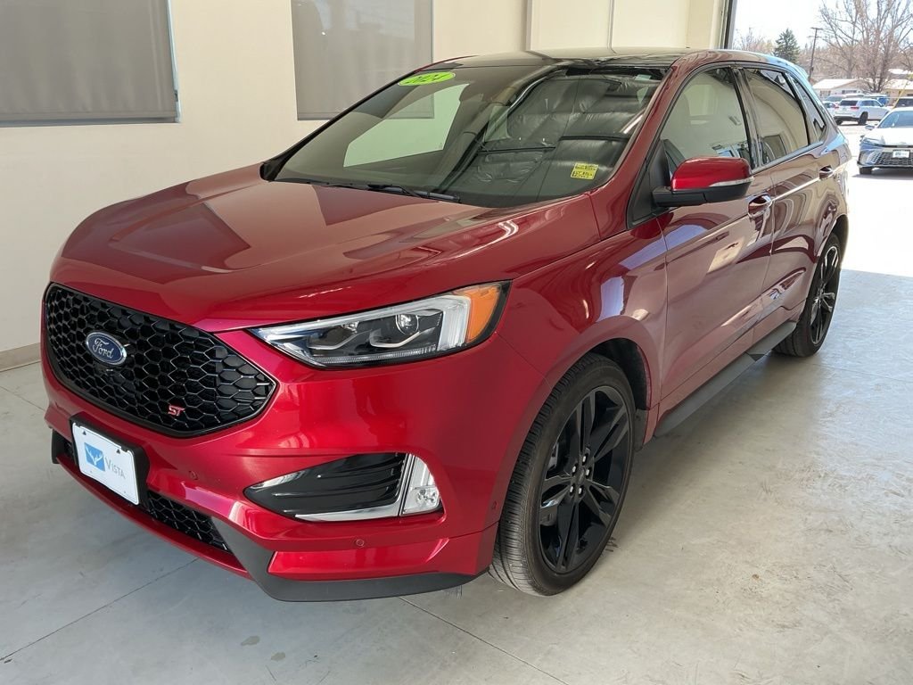 Introducing the exceptional 2024 Ford Edge ST - a performance-driven SUV that seamlessly blends power, sophistication, and cutting-edge technology. This stunning Red-colored Edge ST, with just 10,800 miles on the odometer, is a true gem that's ready to elevate your driving experience. Equipped with a thrilling 2.7L V6 EcoBoost engine, paired with a 7-Speed Automatic transmission and All-Wheel Drive, this Edge ST delivers an exhilarating performance that will leave you craving the open road. Boasting an impressive 19 city/25 highway MPG, this SUV offers the perfect balance of power and efficiency. As a Ford Gold Certified pre-owned vehicle, this Edge ST has undergone a rigorous 172-point inspection, ensuring exceptional quality and peace of mind. With Roadside Assistance, a Transferable Warranty, and a Limited Warranty that extends 12 months/12,000 miles beyond the original coverage, you can drive with confidence knowing you're backed by one of the industry's most comprehensive certification programs. Additionally, you'll receive 22,000 FordPass Rewards Points to use towards your first two maintenance visits, adding even more value to your purchase. Imagine yourself behind the wheel of this remarkable 2024 Ford Edge ST, effortlessly navigating the roads with power, style, and the latest technology at your fingertips. Experience the difference that this certified pre-owned SUV can make in your daily driving. Visit our showroom today and let us demonstrate why this Edge ST is the perfect addition to your lifestyle.