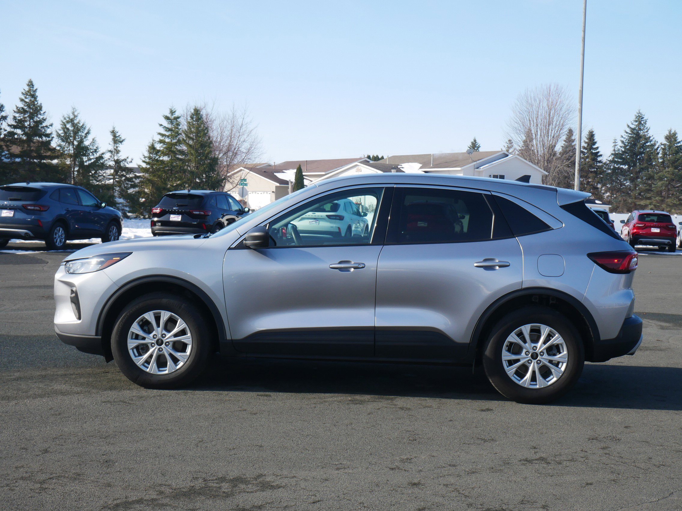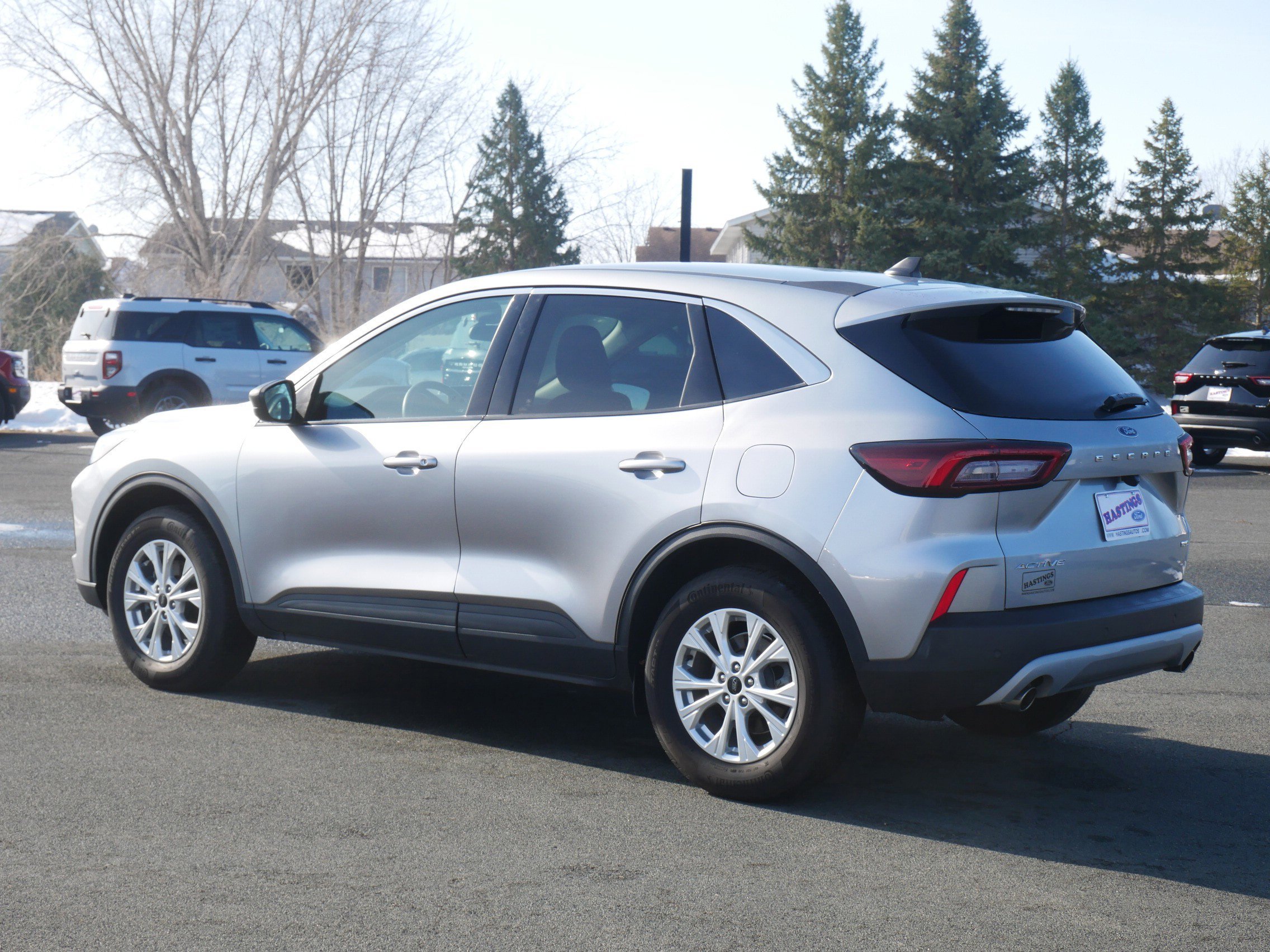 The 2024 Ford Escape Active AWD delivers modern styling, impressive fuel efficiency and advanced technology in a compact SUV designed for everyday versatility. Powered by the efficient 1.5L EcoBoost engine paired with an 8-speed automatic transmission and intelligent all-wheel drive, the Escape offers confident performance in all seasons. Inside, the cabin features unique cloth seating, dual-zone automatic climate control, push-button start, rotary gear shift dial and a modern layout centered around a large touchscreen infotainment system with Apple CarPlay, Android Auto and FordPass Connect. This well-equipped model includes the Cold Weather Package with heated front seats, heated steering wheel, heated mirrors and remote start, along with Technology Package #1 featuring a 13.2-inch touchscreen, adaptive cruise control, lane centering assist, rear parking sensors and connected navigation for added convenience and safety. Finished in Iconic Silver Metallic, the Escape Active AWD blends comfort, efficiency and advanced driver-assist technology into a well-rounded SUV perfect for commuting, family use and weekend travel!