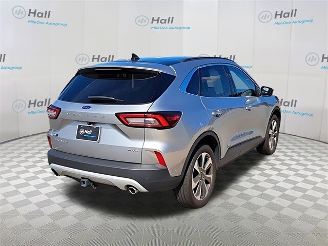 CARFAX One-Owner. Clean CARFAX. Iconic Silver Metallic 2024 Ford Escape Platinum AWD 8-Speed Automatic EcoBoost 2.0L I4 GTDi DOHC Turbocharged VCT We are currently offering Vehicle Purchase Home Delivery by appointment. Please contact for details., AWD, 2.91 Axle Ratio, 4-Wheel Disc Brakes, 6 Speakers, ABS brakes, Active Park Assist 2.0, Air Conditioning, Alloy wheels, AM/FM radio: SiriusXM, AM/FM Stereo, Auto High-beam Headlights, Auto-dimming Rear-View mirror, Automatic temperature control, Black Roof-Rack Side Rails, Brake assist, Bumpers: body-color, Class II Trailer Tow Package, Compass, Delay-off headlights, Driver door bin, Driver vanity mirror, Dual front impact airbags, Dual front side impact airbags, Electronic Fuel Door Release, Electronic Stability Control, Emergency communication system: SYNC 4 911 Assist, Equipment Group 601A, Exterior Parking Camera Rear, FordPass Connect, Four wheel independent suspension, Front anti-roll bar, Front Bucket Seats, Front Center Armrest, Front dual zone A/C, Front fog lights, Front reading lights, Fully automatic headlights, Garage door transmitter, HD Radio, Head-Up Display, Heated ActiveX Trimmed Front Sport Contour Bucket Seats, Heated door mirrors, Heated front seats, Heated Leather-Trimmed Front Sport Contour Seats, Heated steering wheel, Illuminated entry, Knee airbag, Low tire pressure warning, Memory seat, Navigation system: Connected Navigation, Neutral Towing Capability, Occupant sensing airbag, Outside temperature display, Overhead airbag, Overhead console, Panic alarm, Panoramic Vista Roof, Passenger door bin, Passenger vanity mirror, Pedestrian Alert Sounder, Power door mirrors, Power driver seat, Power Liftgate, Power passenger seat, Power steering, Power windows, Premium Technology Package, Radio data system, Radio: B&O Sound System by Bang & Olufsen, Rain sensing wipers, Rear anti-roll bar, Rear reading lights, Rear seat center armrest, Rear window defroster, Rear window wiper, Remote keyless entry, Roof rack: rails only, Security system, Speed control, Speed-sensing steering, Speed-Sensitive Wipers, Split folding rear seat, Spoiler, Steering wheel mounted audio controls, SYNC 4 w/Enhanced Voice Recognition, Tachometer, Telescoping steering wheel, Tilt steering wheel, Traction control, Trip computer.