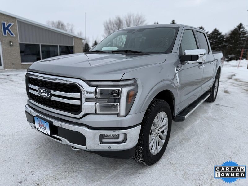 Discover the power and luxury of the 2024 Ford F-150 Lariat at Papik Motors Inc in Luverne. Elevate your driving experience with the 2024 Ford F-150 Lariat, the ultimate blend of rugged capability and upscale comfort that's redefining full-size trucks. Available now at Papik Motors Inc in Luverne, this top-tier trim boasts a commanding presence with its bold styling, premium chrome accents, and available 5.0L V8 or 3.5L EcoBoost V6 engines delivering up to 400 horsepower and best-in-class towing capacity of 14,000 pounds. Whether you're hauling trailers for work in Luverne or tackling weekend adventures across Minnesota, the F-150 Lariat's available 4x4 system and adaptive suspension ensure confident handling on any terrain. Inside, revel in luxurious leather-trimmed seats, a 12-inch digital productivity screen, and the innovative Ford BlueCruise hands-free highway driving system for effortless long hauls. What sets the 2024 Ford F-150 Lariat apart as the best choice for discerning buyers? It's packed with smart tech like Pro Power Onboard to power your job site or tailgate, wireless charging, and a 360-degree camera for unmatched visibility. Fuel efficiency shines with hybrid options up to 25 mpg combined. At Papik Motors we provide competitive financing and expert service.