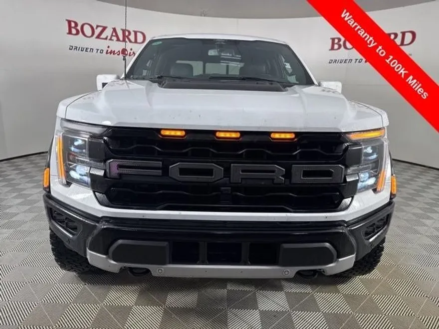 Check out this one owner clean Carfax Gold Certified 2024 Ford Raptor! Oxford White 2024 Ford F-150 Raptor 3.5L V6 EcoBoost 10-Speed Automatic 4WD, Equipment Group 801A Standard, Twin Panel Moonroof, 14 Speakers, 17 Cast Aluminum Wheels, 4-Wheel Disc Brakes, ABS brakes, Adaptive suspension, Adjustable pedals, Air Conditioning, Alloy wheels, AM/FM radio: SiriusXM with 360L, Auto High-beam Headlights, Auto tilt-away steering wheel, Auto-dimming door mirrors, Auto-dimming Rear-View mirror, Automatic temperature control, Brake assist, Bumpers: body-color, Compass, Delay-off headlights, Driver door bin, Driver vanity mirror, Dual front impact airbags, Dual front side impact airbags, Electronic Locking w/4.10 Axle Ratio, Electronic Stability Control, Emergency communication system: SYNC 4 911 Assist, Front anti-roll bar, Front Bucket Seats, Front Center Armrest, Front dual zone A/C, Front fog lights, Front reading lights, Front wheel independent suspension, Fully automatic headlights, Garage door transmitter, Heads-Up Display, Heated door mirrors, Heated front seats, Heated rear seats, Heated steering wheel, Illuminated entry, Lane Departure Warning System, Leather Trim Seats, Low tire pressure warning, Memory seat, Navigation system: Connected Navigation, Occupant sensing airbag, Outside temperature display, Overhead airbag, Overhead console, Panic alarm, Passenger door bin, Passenger vanity mirror, Pedal memory, Power door mirrors, Power driver seat, Power passenger seat, Power steering, Power windows, Radio data system, Radio: B&O Unleashed Sound System by Bang & Olufsen is not the best match for price.