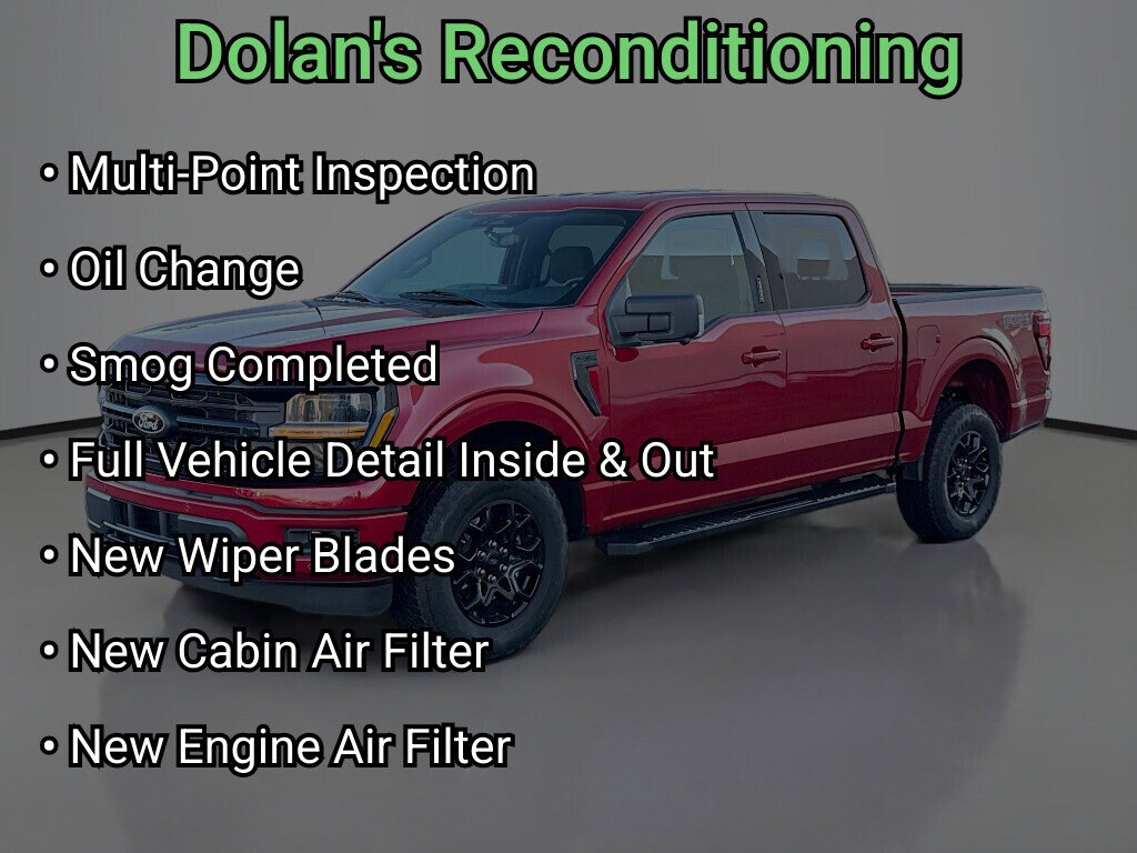 2024 Ford F-150 XLT This vehicle is brought to you by Dolan Toyota located in Reno, Nevada and is available for immediate delivery. CARFAX One-Owner. Multi-Point Inspection, w/Oil Change, Smog Completed, & Full Vehicle Detail Inside & Out, Wiper Blades are New all around, Cabin Air Filter is New, Engine Air Filter is New, 400W Cab & Bed Outlets, 4x4 FX4 Off-Road Bodyside Decal, Adaptive Cruise Control w/Stop & Go, Auto-Dimming Rear-View Mirror, Cloth 40/Console/40 Front Seats, Equipment Group 302A Mid, Ford BlueCruise Equipped (90-Day Trial), FX4 Off-Road Package, Heated Front Seats, Hill Descent Control, Integrated Trailer Brake Controller, Intelligent Access w/Push Button Start, Monotube Rear Shocks, Off-Road Tuned Front Shock Absorbers, Power Glass Heated Sideview Mirrors, Power-Sliding Rear Window, Remote Start System w/Remote Tailgate Release, Rock Crawl Mode, Speed Sign Recognition, Tow/Haul Package, Tray Style Floor Liner. At Dolan Auto Group, we understand that you don't want to be pressured when buying a car. That's why we decided to take a different approach and pay our product specialists a salary, not a commission. Having Non-commissioned Product Specialists allows our team to focus on what's important - helping you find the right vehicle for your journey.