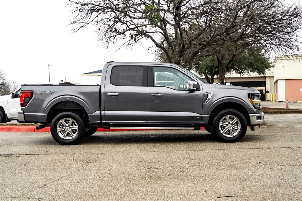 Carfax One-Owner. Gray Metallic 2024 Ford F-150 XLT 4WD 10-Speed Automatic 3.5L PowerBoost Full-Hybrid V6 3.5L PowerBoost Full-Hybrid V6, 4WD, 4-Wheel Disc Brakes, 400W Cab & Bed Outlets, 6 Speakers, ABS brakes, Adaptive Cruise Control w/Stop & Go, Air Conditioning, Alloy wheels, AM/FM radio: SiriusXM with 360L, Auto High-beam Headlights, Auto-Dimming Rear-View Mirror, Auto-dimming Rear-View mirror, Automatic temperature control, Brake assist, Bumpers: chrome, Chrome wheels, Cloth 40/20/40 Front Seat, Cloth 40/20/40 Smoked Truffle Front Seat, Cloth 40/20/40/Console/40, Console Works W/Storage Storage Storage. Odometer is 2386 miles below market average!