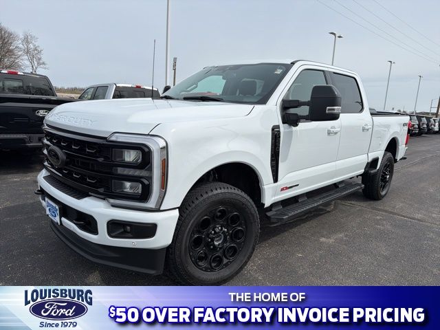 Clean CARFAX, One-Owner. 2024 Ford F-250 Crew Cab Lariat 4x4. 6.7L High Output Power Stroke V8 Diesel. Lariat Ultimate Package, Black Appearance Package, Head-Up Display, Intelligent Adaptive Cruise Control with Stop-and-Go, Pro Trailer Backup Assist, B&O Unleashed Sound System by Bang & Olufsen, Tailgate Step & Handle, Tough Bed Spray-In Bedliner. Louisburg Ford offers a constantly updated selection of high-quality pre-owned cars and trucks. Every vehicle meets strict standards and is thoroughly inspected by our service department before sale. We feature value-priced Ford factory program vehicles, trade-ins, and Ford Certified Pre-Owned models. Family-owned for over 47 years, located just 15 miles south of Overland Park on Hwy 69—big city selection, small town prices. Buy with confidence from a 23-time Ford President's Award winner. Serving the Louisburg and surrounding communities.