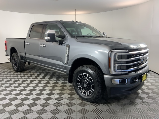 CARFAX One-Owner. Clean CARFAX. Gray 2024 Ford F-350SD Platinum 4D Crew Cab Power Stroke 6.7L V8 DI 32V OHV Turbodiesel 10-Speed Automatic 4WD Priced below KBB Fair Purchase Price! * CARFAX One Owner *, * CARFAX Zero Accidents *, * Short Bed *, * 4x4 *, 4WD, 4-Wheel Disc Brakes, ABS brakes, Adjustable pedals, Air Conditioning, Alloy wheels, AM/FM radio: SiriusXM with 360L, Auto High-beam Headlights, Auto tilt-away steering wheel, Auto-dimming Rear-View mirror, Automatic temperature control, Brake assist, Compass, Delay-off headlights, Driver door bin, Driver vanity mirror, Dual front impact airbags, Dual front side impact airbags, Electronic Stability Control, Electronic-Locking w/3.55 Axle Ratio, Electronic-Locking w/3.73 Axle Ratio, Emergency communication system: SYNC 4 911 Assist, Engine Block Heater, Exterior Parking Camera Rear, Flow-Through Console, Front anti-roll bar, Front Bucket Seats, Front Center Armrest, Front dual zone A/C, Front fog lights, Front reading lights, Fully automatic headlights, FX4 Off-Road Package, Garage door transmitter, Heated door mirrors, Heated front seats, Heated rear seats, Heated steering wheel, Hill Descent Control, Illuminated entry, Leather steering wheel, LED Roof Clearance Lights, Low tire pressure warning, Memory seat, Navigation system: Connected Navigation (includes complimentary 1-year trial), Off-Road Specifically Tuned Shock Absorbers, Outside temperature display, Overhead airbag, Overhead console, Panic alarm, Passenger door bin, Passenger vanity mirror, Pedal memory, Power door mirrors, Power driver seat, Power passenger seat, Power steering, Power windows, Radio: B&O Unleashed Sound System by Bang & Olufsen, Rain sensing wipers, Rear reading lights, Rear seat center armrest, Rear step bumper, Rear window defroster, Remote keyless entry, Security system, SiriusXM Radio w/360L, Speed control, Split folding rear seat, Steering wheel memory, Steering wheel mounted audio controls, SYNC 4 w/Enhanced Voice Recognition, Tachometer, Telescoping steering wheel, Tilt steering wheel, Tough Bed Spray-In Bedliner, Traction control, Trip computer, Turn signal indicator mirrors, Twin Panel Power Moonroof, Unique FX4 Off-Road Box Decal, Variably intermittent wipers, Ventilated front seats. Come visit us at Kendall Ford of Marysville. We have the big city inventory, but treat you with small town neighborly respect.