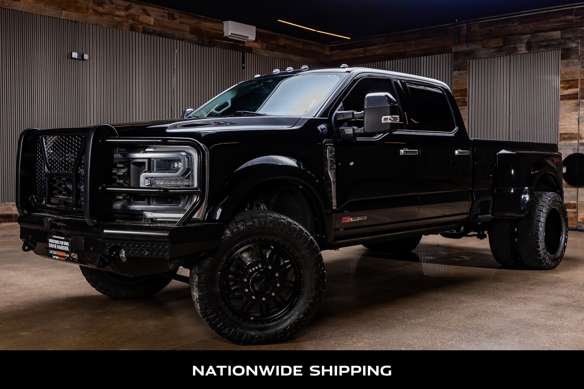Diesel powered, our 2024 Ford F-450 Limited Crew Cab 4X4 Dually with the FX4 Off-Road Package unlocks the ability and comfort to conquer your world in Agate Black Metallic! Motivated by a TurboCharged 6.7 Liter High Output PowerStroke Diesel V8 offering 500hp and 1200lb-ft of torque to a 10 Speed Automatic transmission. Easy to handle on hard jobs, this Four Wheel Drive Ford combines its mighty muscle with the FX4 Off-Road Pack's skid plates, hill descent control, FX4 decals, off-road specifically tuned shock absorbers, a power sunroof, LED lighting, fog lamps, a spray-on bedliner, a power tailgate, PowerScope trailer mirrors, power running boards, Cusotm HDX bumper, Grille Guard, and premium Custom American Force alloy wheels for a sophisticated look that owners love. Our Limited cabin lets you relax in style as your truck gets busy! Highlights include heated/ventilated two-tone leather power front and heated rear seats, a heated leather power steering wheel, dual-zone automatic climate control, a power rear window, and power-adjustable pedals. Enjoy your favorite soundtrack with B&O audio as you connect to your world with a 12-inch touchscreen, a 12-inch driver display, connected navigation, WiFi compatibility, Apple CarPlay, Android Auto, Bluetooth, wireless charging, and voice control. Ford helps seal the deal with high-tech driver assistance from a head-up display, front/rear automatic braking, trailer-compatible blind-spot monitoring, a 360-degree camera system, lane-keeping assistance, trailer reverse guidance, and more. You're good to go to work and play in F-450 Limited! Save this Page and Call for Availability. We Know You Will Enjoy Your Lifted Trucks Lubbock Test Drive Towards Ownership! Lifted Trucks has built an unmatched reputation over the last two decades for customizing and selling thousands of the highest quality used vehicles in the country. Our inventory is nationally sourced by our certified buyers who cherry pick only the best of the best of what is available. These vehicles then go through an 82 point inspection process to guarantee quality and safety. Our lift kits are installed by our own factory-trained technicians, who have thousands of hours of experience. The installation is then inspected by a second dedicated quality control technician, before being sent to our state of the art Hunter Engineering laser alignment rack. Our aftermarket research and development team always matches the best fitting lift kit, shocks, and wheel & tire combinations to each individual vehicle for optimal off-road performance, while maintaining an incredibly smooth ride on the street. We never cut any corners on our builds, which is why we only use top quality name brand products when building your Truck, SUV or Jeep. Lifted Trucks has thousands of 5-star reviews, and one of the highest rates of repeat customers in the auto industry. Stop by today, and experience the difference.