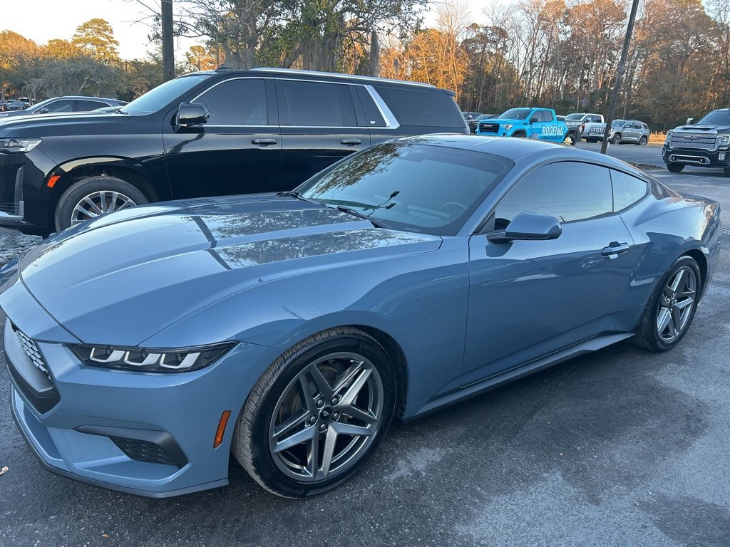 2024 Mustang EcoBoost LOCAL TRADE IN, BACKUP CAMERA, SOUND PACKAGE SIRIUS XM SATELLITE RADIO, CLEAN CARFAX HISTORY, ONE OWNER, REMOTE KEYLESS ENTRY, ALLOY WHEELS, Active Valve Performance Exhaust, 19x8.5 Premier Polished Aluminum, Dual Zone Auto Temp Control, Mustang EcoBoost, 2D Coupe, EcoBoost 2.3L I4 GTDi DOHC Turbocharged VCT, 10-Speed Automatic, RWD, Vapor Blue Metallic, Black Onyx Cloth, 4-Wheel Disc Brakes, ABS brakes, Air Conditioning, AM/FM Stereo, Automatic temperature control, Brake assist, Dual front impact airbags, Dual front side impact airbags, Dual-Zone Electronic Automatic Temperature Control, Electronic Stability Control, Emergency communication system: 911 Assist, Four wheel independent suspension, Front anti-roll bar, Knee airbag, Low tire pressure warning, Occupant sensing airbag, Overhead airbag, Panic alarm, Power steering, Power windows, Radio data system, Rear anti-roll bar, Rear window defroster, Remote keyless entry, SiriusXM w/360L & HD Radio, Speed-sensing steering, Steering wheel mounted audio controls, SYNC 4.0 QNX, Traction control, Wheels: 19 x 8.5 Premier Polished Aluminum. CARFAX One-Owner. RWD 22/33 City/Highway MPG EcoBoost 2.3L I4 GTDi DOHC Turbocharged VCT 10-Speed Automatic You'll do better at Hilton Head Buick-GMC-Cadillac. 843-815-1500, serving Hilton Head Island, Bluffton, Beaufort and everyone coast to coast.