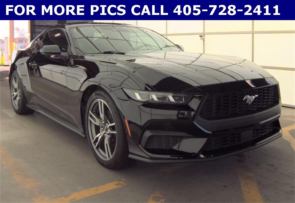 Welcome to Cavender Ford of OKC, a Cavender Auto Family dealership. This vehicle is located at 7320 Northwest Expressway, Oklahoma City, OK 73132. Here at Cavender, we build relationships based on trust and integrity to exceed your expectations in your ownership experience. Quite simply, we strive to Make Confidence Happen! So stop by and allow us to serve your automotive needs; we would love to meet you. Shadow Black 2024 Ford Mustang EcoBoost RWD EcoBoost 2.3L I4 GTDi DOHC Turbocharged VCT 10-Speed Automatic. Cavender Certified Pre-Owned Program Built-in Benefits: Limited Powertrain Warranty for your peace of mind. Coverage includes components for engine, transmission and axles (for specific component coverage, please speak with a dealer representative). 24/7 Roadside Assistance — No out-of-pocket costs for customers towed to our dealership (if located within 30 miles), lockout assistance, jump start, fuel and fluid delivery, flat tire changes, available 365 days/year, up to $100 maximum coverage per roadside incident. A Vehicle History Report is included with every Cavender Certified Pre-Owned vehicle to offer you Confidence knowing that the vehicle you are purchasing is right for you and the road ahead. The Cavender Auto Family, proudly serving our communities since 1939, and we look forward to serving you! - Equipment: Equipment Group 101A High Package (9-Speaker Stereo System, Cloth/Vinyl Heated Bucket Seats, Dual-Zone Electronic Automatic Temperature Control, and SiriusXM w/360L & HD Radio), Wheel & Stripe Package (Wheels: 19" x 8.5" Machined-Face Aluminum), 4-Wheel Disc Brakes, ABS brakes, Air Conditioning, Alloy wheels, AM/FM Stereo, Auto High-beam Headlights, Automatic temperature control, Brake assist, Bumpers: body-color, Compass, Delay-off headlights, Driver door bin, Driver vanity mirror, Dual front impact airbags, Dual front side impact airbags, Electronic Stability Control, Emergency communication system: 911 Assist, Exterior Parking Camera Rear, Four wheel independent suspension, Front anti-roll bar, Front Bucket Seats, Front Center Armrest, Front reading lights, Fully automatic headlights, Gray Scale Opacity Fade Hood Stripes, Illuminated entry, Knee airbag, Leather Shift Knob, Low tire pressure warning, Occupant sensing airbag, Outside temperature display, Overhead airbag, Overhead console, Panic alarm, Passenger door bin, Passenger vanity mirror, Power door mirrors, Power steering, Power windows, Premium Floor Liners Front & Rear (w/Carpet Mats), Radio data system, Rain sensing wipers, Rear anti-roll bar, Rear Parking Sensors, Rear window defroster, Remote keyless entry, Speed control, Speed-sensing steering, Speed-Sensitive Wipers, Split folding rear seat, Sport steering wheel, Steering wheel mounted audio controls, SYNC 4.0 QNX, Tachometer, Telescoping steering wheel, Tilt steering wheel, Traction control, Trip computer, Variably intermittent wipers, Voltmeter, Wheels: 18" x 8" Machined-Face Aluminum, and White Stripe. Odometer is 15098 miles below market average! CARFAX One-Owner. Clean CARFAX.