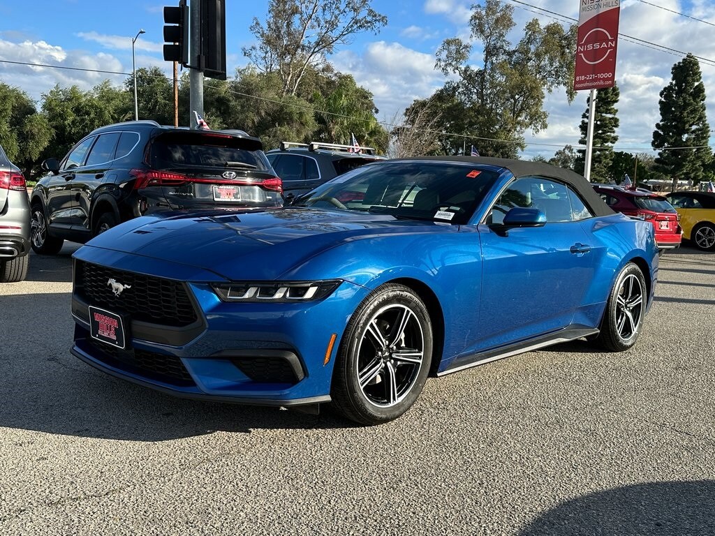 2024 Ford Mustang Blue Metallic EcoBoost Premium 2D Convertible 22/33 City/Highway MPG 10-Speed Automatic. Price does not include additional accessories. Clean CARFAX. Nissan of Mission Hills is your premier New and Used automotive dealership. Come experience a fun and seamless automotive buying experience. We serve all drivers including, but not limited to Mission Hills, Van Nuys, North Hills, Porter Ranch, Granada Hills, Glendale, Los Angeles, Simi Valley, Chatsworth and the entire San Fernando Valley. We always strive to deliver a first-class car-shopping experience. We make that possible by providing a stunning collection of vehicles, hassle-free financing and high-quality service and repairs. That's how we're able to serve as the one-stop shop for buying, financing and servicing your cars!