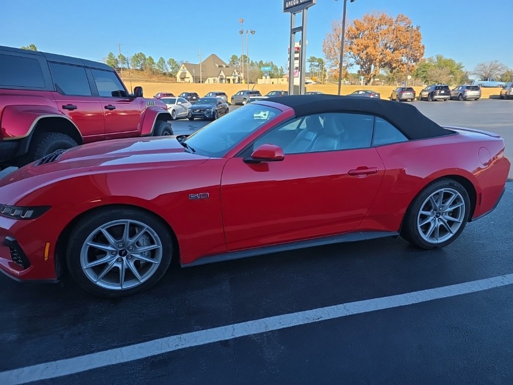 Recent Arrival! Clean Carfax. Carfax One-Owner Mustang GT Premium, 2D Convertible, 5.0L V8 Ti-VCT, 10-Speed Automatic, Race Red, Active Anti-Theft System, Alloy wheels, Equipment Group 400A Standard Package, Exterior Parking Camera Rear, Front Bucket Seats, Fully automatic headlights, Heated front seats, Heated steering wheel, Locking Center Console, Power convertible roof, Power driver seat, Power passenger seat, Rain sensing wipers, Rear Parking Sensors, Security Package, SYNC 4.0 QNX, Ventilated front seats, Wheel Locking Kit. Race Red 2024 Ford Mustang GT Premium RWD 10-Speed Automatic 5.0L V8 Ti-VCT. Please Call Gregg Orr Cadillac and Pre-Owned at 501-525-6633 To Schedule Your Test Drive Today!
