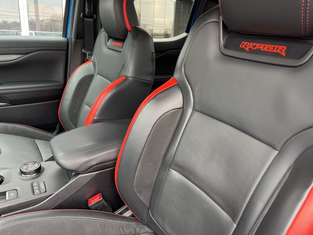 One Owner. $57.9K Original MSRP. Raptor Series 4x4. Velocity Blue Metallic. Raptor Unique Ebony Leather Seats. Heated Leather Seats. Heated Steering Wheel. Navigation. 12-Inch Touchscreen Display. B&O Premium Sound System. Remote Start. Keyless Entry. FOX Shocks. Lane Keep Assist. Cross-Traffic Alert. LED Lighting. WATTS Link Rear Suspension. Power Sliding Rear Window. 17-Inch Gray Raptor Wheels. Raptor Graphics. Upfitter Switches. Dual Zone Climate Control. 3.0L EcoBoost.