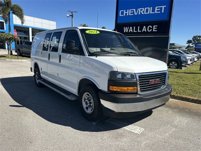 CARFAX One-Owner. Clean CARFAX. CARFAX 1 OWNER, Dealer Maintenance Performed:, LUBE, OIL, AND FILTER CHANGED, 3.42 Rear Axle Ratio, AM/FM Stereo w/MP3 Player, Black Rubberized-Vinyl Front Only Floor Covering, Chrome Appearance Package, Chrome Grille, Cruise Control, Delay-off headlights, Driver Convenience Package, Electronic Stability Control, Engine Cover Console w/Swing-Out Storage Bin, Fixed Rear Door Window Glass, Fixed Rear Side Door Window Glass, Front & Rear Chrome Bumpers w/Step-Pad, Fully automatic headlights, Heated door mirrors, Power door mirrors, Power steering, Power windows, Preferred Equipment Group 1WT, Rear & Side Cargo Door Glass, Rear Side Door Glass Window Security Bar, Reclining Front Bucket Seats w/Inboard Armrests, Single-Zone Manual Air Conditioning, Tilt Steering Wheel, Variably intermittent wipers. Summit White 2024 GMC Savana 2500 Work Van RWD 8-Speed Automatic with Overdrive 4.3L V6. Come to Wallace Chevrolet to view Over 300 preowned vehicles in stock! 1st Oil Change after purchase of vehicle is FREE! Recent Arrival!