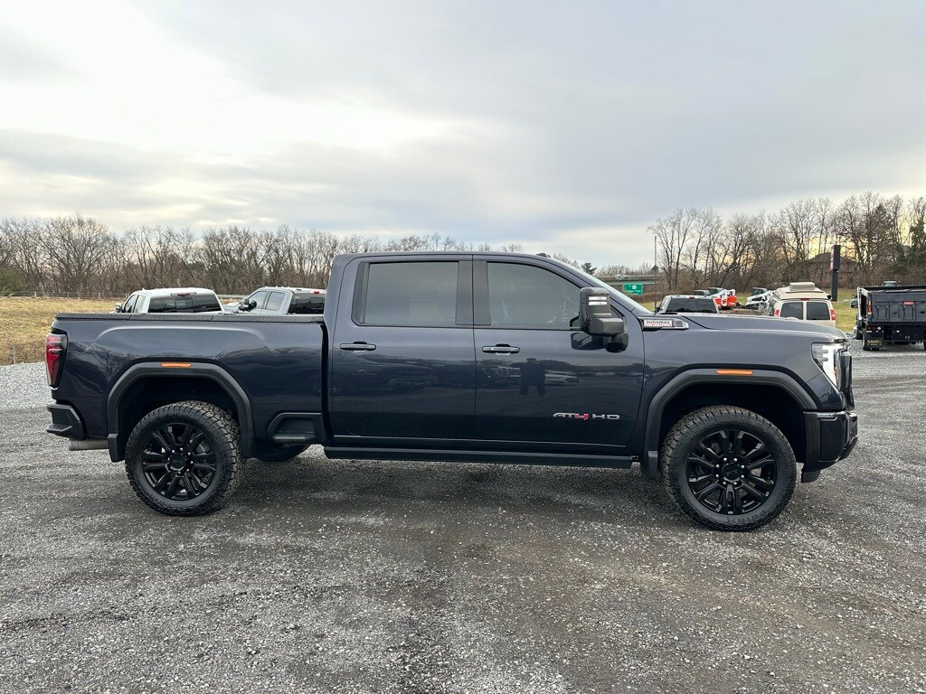 This 2024 GMC Sierra 2500HD AT4 4WD in Titanium Rush Metallic is the truck buyers wait for factory-loaded and already upgraded. Powered by the legendary 6.6L Duramax V8 Turbo Diesel paired with a 10-Speed Automatic transmission, this AT4 delivers massive torque, serious towing authority, and aggressive road presence. Sitting on OEM black 22-inch wheels wrapped in 35-inch all-terrain tires, this truck has a mean, no-nonsense stance without sacrificing ride quality or reliability. This is not stock. This is turn-key AT4 done right. This is the Duramax AT4 buyers actually want already upgraded, properly equipped, and ready to work or flex the moment you take delivery. Ideal for contractors, heavy haulers, and buyers who want aggressive looks without aftermarket guesswork. Aggressive. Loaded. Diesel. AT4. No compromises.