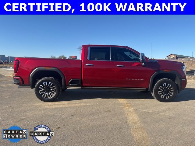 Unmatched capability meets first-class comfort in this 2024 GMC Sierra 2500HD Denali Crew Cab 4WD, a heavy-duty truck built to perform while surrounding you in luxury. Under the hood, the legendary Duramax 6.6L V8 Turbo Diesel engine is paired with a robust 10-speed automatic transmission, delivering massive torque, confident towing power, and smooth performance in all driving conditions thanks to the advanced 4WD system. Finished in striking Volcanic Red Tintcoat with an upscale Atmosphere/Brownstone interior, the Denali trim offers true premium refinement. Enjoy features like heated and ventilated leather front seats, premium Bose audio system, head-up display, wireless Apple CarPlay & Android Auto, multi-function tailgate, spray-on bedliner, and HD Surround Vision camera system. With just 40,133 miles, this Sierra 2500HD Denali is built to do it all—available now at Ferguson Superstore.
