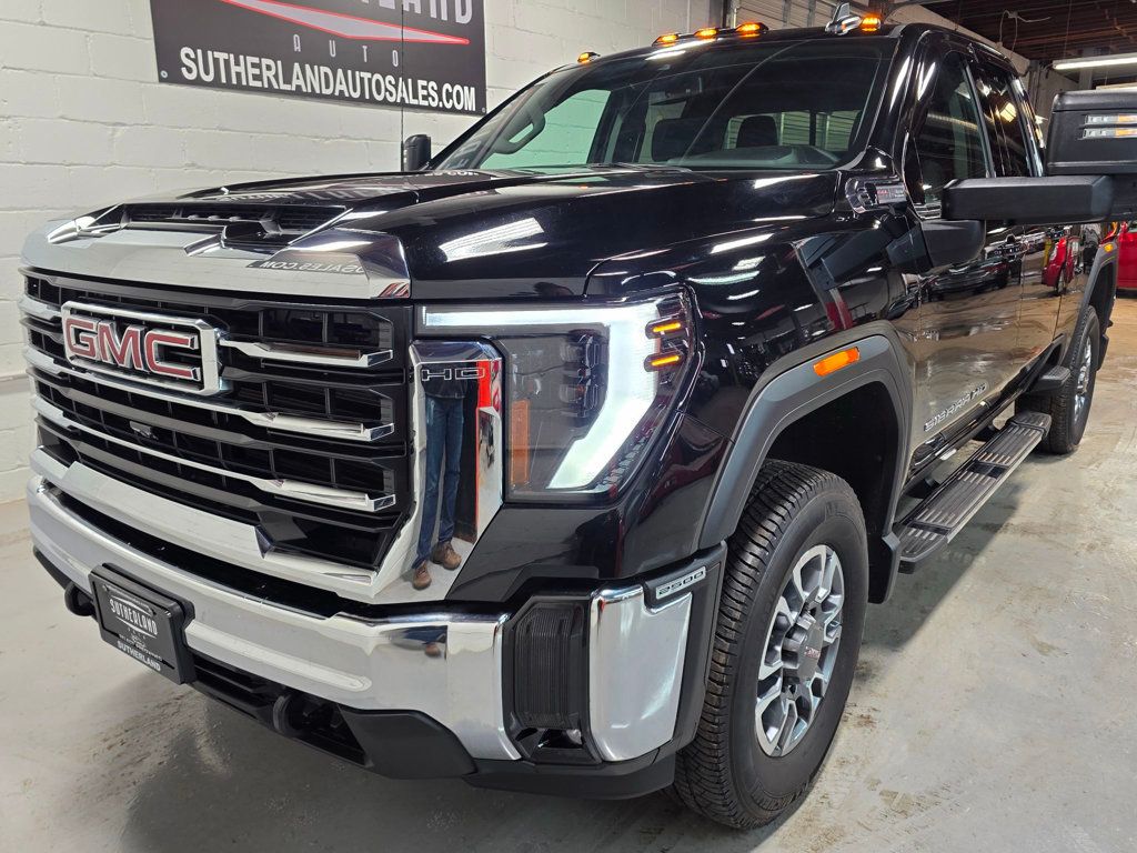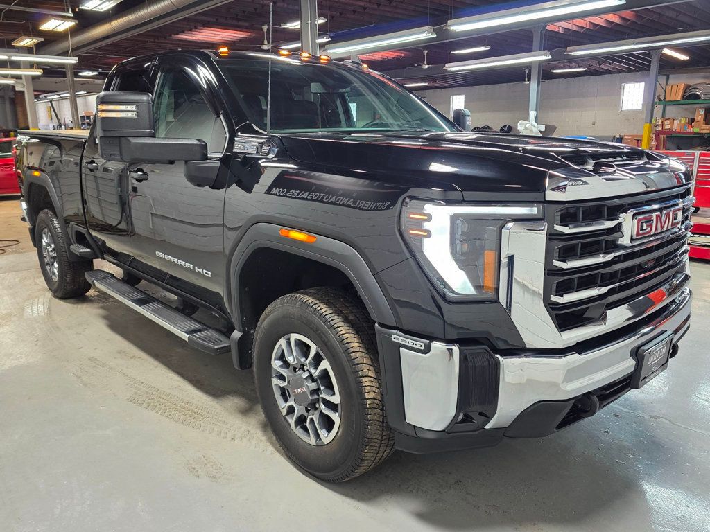 This 2024 GMC Sierra 2500HD SLE 4WD Double Cab is a powerful, well-equipped heavy-duty truck built to handle serious work while delivering modern comfort, technology, and safety. Finished in Onyx Black with a Jet Black interior, this Sierra combines rugged capability with premium features, making it an excellent choice for towing, hauling, or daily driving. Under the hood is the proven 6.6L V8 Direct Injection engine with Variable Valve Timing, paired with the legendary Allison 10-speed automatic transmission. This drivetrain delivers confident power, smooth shifting, and exceptional durability. The AutoTrac two-speed transfer case, 3.73 rear axle, and automatic locking rear differential ensure confident traction on job sites, back roads, or in adverse weather conditions.