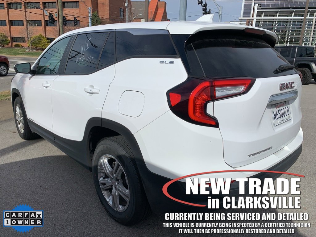 CARFAX One-Owner. Clean CARFAX. Summit White 2024 GMC Terrain SLE The Pre-Owned 2024 GMC Terrain SLE with 1.5L DOHC at Serra Clarksville. Well equipped: Preferred Equipment Group 3SA, 2 USB Data Ports w/Auxiliary Input Jack, 3.47 Final Drive Axle Ratio, 4-Way Manual Driver's Seat, 4-Way Manual Front Passenger Seat, 4-Wheel Disc Brakes, 4.2 Multi-Color Driver Information Screen, 6 Speakers, 6-Speaker Audio System Feature, ABS brakes, Air Conditioning, Alloy wheels, AM/FM radio: SiriusXM, Auto High-beam Headlights, Auto-dimming Rear-View mirror, Automatic temperature control, Bluetooth For Phone, Brake assist, Bumpers: body-color, Compass, Delay-off headlights, Deleted 3 Years of Remote Access, Driver door bin, Driver vanity mirror, Dual front impact airbags, Dual front side impact airbags, Electronic Stability Control, Emergency communication system: OnStar and GMC connected services capable, Four wheel independent suspension, Front anti-roll bar, Front Bucket Seats, Front Center Armrest, Front reading lights, Fully automatic headlights, Heated door mirrors, Illuminated entry, Low tire pressure warning, Occupant sensing airbag, Outside temperature display, Overhead airbag, Overhead console, Panic alarm, Passenger door bin, Passenger vanity mirror, Power door mirrors, Power steering, Power windows, Premium Cloth Seat Trim, Radio data system, Radio: GMC Infotainment Audio System w/7 Display, Rear anti-roll bar, Rear seat center armrest, Rear window defroster, Rear window wiper, Remote keyless entry, Security system, SiriusXM, Speed control, Speed-sensing steering, Split folding rear seat, Spoiler, Steering wheel mounted audio controls, Tachometer, Telescoping steering wheel, Tilt steering wheel, Traction control, Trip computer, Variably intermittent wipers, Wheels: 17 x 7 Silver Painted Aluminum, and Wireless Apple CarPlay/Wireless Android Auto. FWD 1.5L DOHC 9-Speed Automatic Recent Arrival! Odometer is 3777 miles below market average! 24/29 City/Highway MPG Serra Cadillac Clarksville embodies a commitment to quality, integrity, and customer satisfaction with our Veteran Owned, Value Driven culture. With a vast selection of top-tier pre-owned vehicles, we cater to a diverse range of preferences, lifestyles and budgets. When you are searching for a pre-owned SUV or used truck near Nashville, look no further than Serra Cadillac Clarksville. Call (931) 245-3297 or visit us online at www.SerraCadillacClarksville.com.