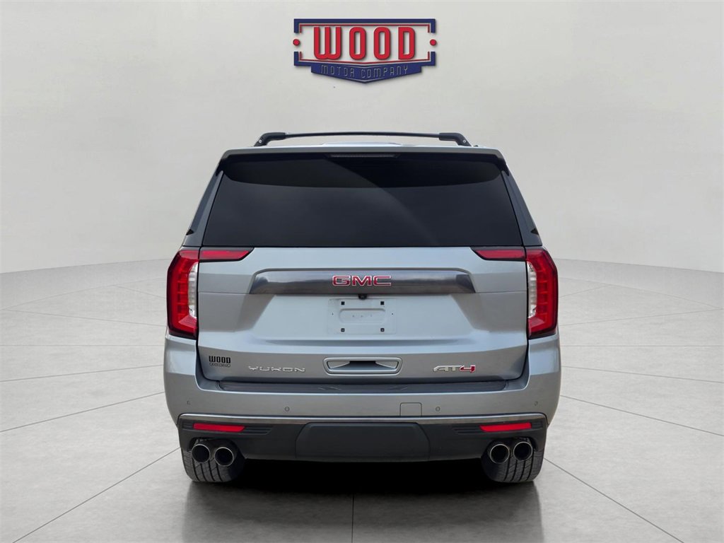 CARFAX One-Owner. Clean CARFAX. Yukon AT4, 4D Sport Utility, EcoTec3 6.2L V8, 10-Speed Automatic with Overdrive, 4WD, Sterling Metallic, Jet Black w/Perforated Leather Seating Surfaces, 12-Way Power Seat Adjusters, 15 Diagonal Multi-Color Head-Up Display, 2 Presets For Outside Rearview Mirrors, 3rd Row 60/40 Power-Folding Split-Bench Seat, Apple CarPlay/Android Auto, Automatic temperature control, Black Roof-Mounted Luggage Rack Side Rails, Bose 9-Speaker Stereo Audio System Feature, Bright Front & Rear Door Sill Plates, Dual-Pane Panoramic Power Sunroof, Electronic Stability Control, Enhanced Trailering Technology Package, Extra Capacity Cooling System, Front dual zone A/C, Front High-Approach Angle Fascia, Fully automatic headlights, Hands-Free Power Programmable Rear Liftgate, HD Surround Vision, Heated 2nd Row Outboard Position Seats, Heated Driver & Front Passenger Seats, Heated front seats, Heated rear seats, Heated Steering Wheel, Heavy-Duty Air Filter, Hill Descent Control, Hitch View, Inside Rear-View Auto-Dimming Mirror, Integrated Trailer Brake Controller, Magnetic Ride Control Suspension, Max Trailering Package, Memory seat, Navigation System, Outside Heated Power-Adjustable Mirrors, Perforated Heated & Ventilated Dr & Frt Pass Seats, Power driver seat, Power Liftgate, Power Release 2nd Row 60/40 Split-Folding Bench Seat, Power Tilt & Telescopic Steering Column, Power windows, Preferred Equipment Group 4SB, Rear air conditioning, Rear Pedestrian Alert, Red Horizontal-Mounted Recovery Hooks, Remote keyless entry, Safety Alert Seat, Smart Trailer Integration Indicator, Steering wheel memory, Steering wheel mounted audio controls, Technology Package, Traction control, Trailer Camera Provisions, Trailering Assist Guidelines, Universal Home Remote, Ventilated front seats, Wired Auxiliary Trailer Camera (LPO), Wireless Charging. Sterling Metallic 2024 GMC Yukon AT4 4WD 10-Speed Automatic with Overdrive EcoTec3 6.2L V8. A solid name you can trust... Wood Motor.