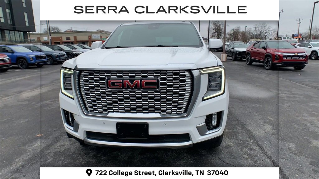 Clean Carfax. Summit White 2024 GMC Yukon Denali. The Pre-Owned 2024 GMC Yukon Denali with EcoTec3 6.2L V8 at Serra Clarksville. Well equipped. Serra Cadillac Clarksville embodies a commitment to quality, integrity, and customer satisfaction with our Veteran Owned, Value Driven culture. With a vast selection of top-tier pre-owned vehicles, we cater to a diverse range of preferences, lifestyles and budgets. When you are searching for a pre-owned SUV or used truck near Nashville, look no further than Serra Cadillac Clarksville.