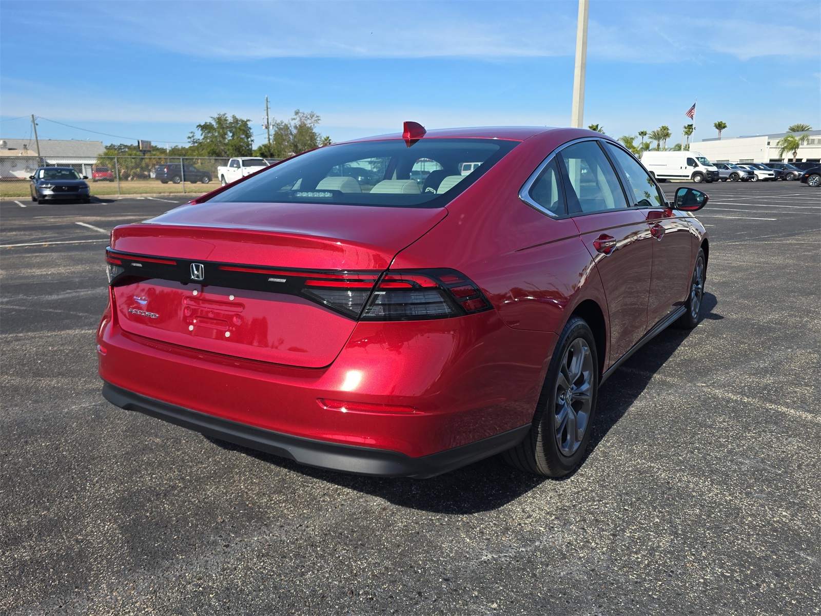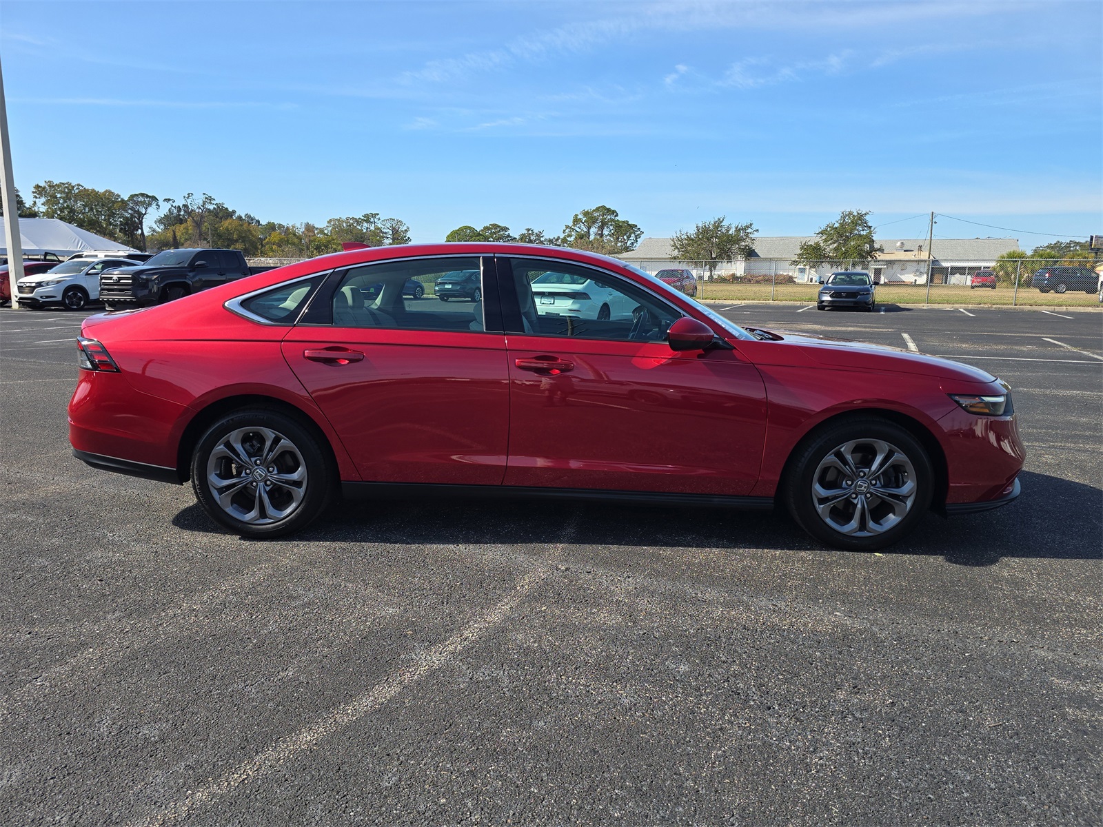 The 2024 Honda Accord EX in Radiant Red Metallic is a stylish and well-balanced midsize sedan that combines everyday practicality, modern technology, comfortable roominess, and confident performance all wrapped in a bold, eye-catching exterior color. The finish, Radiant Red Metallic, is a deep and vibrant red that gleams in the sunlight and adds a touch of personality to the Accords refined design. This rich color accentuates the sedans sleek lines and crisp contours, giving it a confident presence whether you're parked at work, running errands, or cruising on a weekend getaway. From the front, the Accord EX presents a modern and athletic face. Its streamlined grille flows into stylish LED headlamps that deliver strong illumination while adding to the vehicles sophisticated look. The bold Radiant Red Metallic paint highlights the sculpted hood and smooth body panels, making the car feel dynamic even when its standing still. The balanced proportions, elegant curve from the roofline to the rear deck, and refined alloy wheels all work together to create an exterior that's both sporty and upscale. Stepping inside the 2024 Honda Accord EX reveals a comfortable and thoughtfully designed cabin that prioritizes passenger comfort and convenience. The interior offers generous seating for up to five adults, with supportive cloth seats that are comfortable for everyday commutes as well as longer road trips. The front seats provide excellent visibility and natural reach to the controls, while rear passengers enjoy ample legroom and headroom, ensuring everyone travels in comfort. The dashboard layout is intuitive and user-friendly. At its center, a crisp touchscreen infotainment system provides easy access to audio, connectivity, and vehicle settings. With standard Apple CarPlay and Android Auto integration, you can seamlessly connect your smartphone to use your favorite apps, navigate, stream music, and make calls hands-free. Bluetooth connectivity and USB ports help keep all your devices charged and ready for the journey. Steering-wheel-mounted controls put essential functions right at your fingertips, so you stay focused on the road ahead. Under the hood, the 2024 Accord EX is powered by a smooth and efficient four-cylinder engine paired with a refined automatic transmission. This powertrain delivers confident acceleration for city traffic, highway merging, and everyday driving while helping deliver good fuel economy ideal for drivers who want a balance of responsiveness and cost-effective performance. The Accords suspension is tuned to provide a composed and comfortable ride, absorbing bumps and imperfections in the road so that both driver and passengers enjoy a pleasant journey. Safety is a key strength of the Accord, and the EX trim comes equipped with Hondas suite of advanced driver-assist technologies designed to enhance confidence behind the wheel.