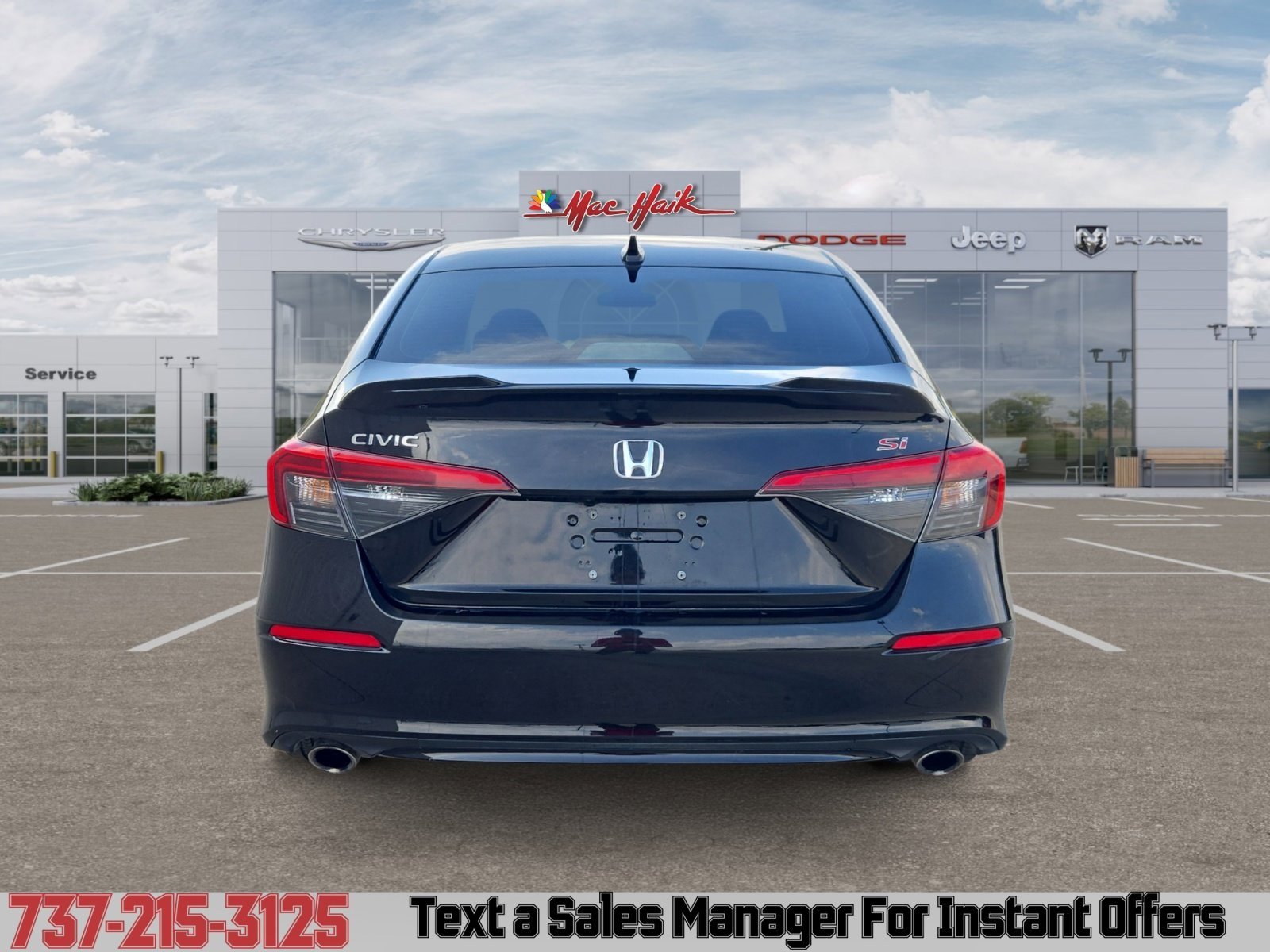 Black 2024 Honda Civic Si FWD 6-Speed Manual 1.5L I4 DOHC 16V. Recent Arrival! 27/37 City/Highway MPG. Mac Haik Dodge is conveniently located close to Austin, Georgetown, Round Rock, Pflugerville, Hutto, Taylor, Temple, Belton, Fort Hood, and surrounding areas. Call us at 512-930-7900. www.machaikonline.com.