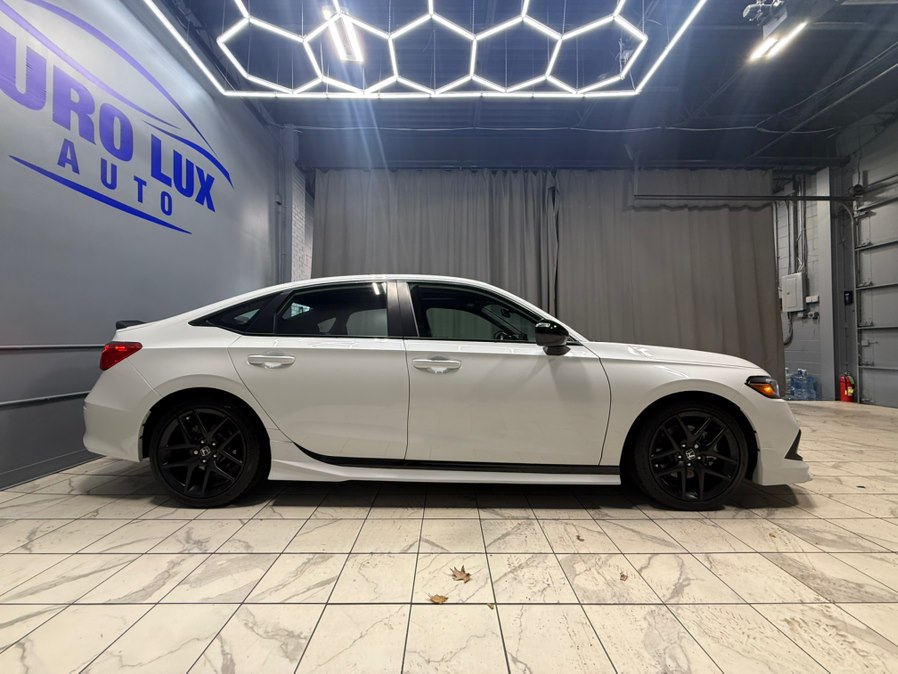 2024 Honda Civic Si Manual, available for sale in Hillside, New Jersey. This vehicle features a 1.5L 4-cylinder turbocharged engine, Platinum White Pearl exterior, and Black/Red interior. It is equipped with a 6-speed manual transmission and offers a sport tuned suspension, LED headlights, and a premium sound system. The car is in stock at Euro Lux Auto in Hillside, NJ.