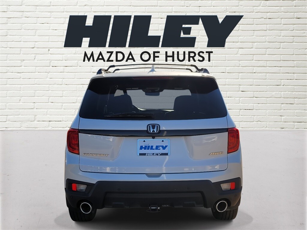 Priced below KBB Fair Purchase Price! Carfax One-Owner. Clean Carfax. Sunroof / Moonroof, one owner, 4WD, leather, heated seats, power seats, navigation, local trade in, A/V remote: CabinControl, Apple CarPlay/Android Auto, Auto High-beam Headlights, Auto-dimming Rear-View mirror, Automatic temperature control, Blind Spot Information (BSI) System warning, Brake assist, Driver's Seat Mounted Armrest, Dual front side impact airbags, Electronic Stability Control, Emergency communication system: HondaLink Assist, Exterior Parking Camera Rear, Front Bucket Seats, Fully automatic headlights, Garage door transmitter: HomeLink, Heated Front Bucket Seats, Heated front seats, Illuminated entry, Lane departure: Lane Keeping Assist System (LKAS) active, Leather-Trimmed Seats, Power Liftgate, Power moonroof, Radio: 215-Watt Audio System w/7 Speakers, Rear window wiper, Telescoping steering wheel, Variably intermittent wipers, Wheels: 20" Sparkle Silver Alloy. Platinum White Pearl 2024 Honda Passport EX-L AWD 9-Speed Automatic 3.5L V6 24V SOHC i-VTEC. Odometer is 11651 miles below market average! Hiley Mazda of Hurst 817-701-1000. Trade ins are welcome and we finance! Please call to confirm availability, as used vehicles are first come, first sold. All used vehicles are subject to 2% Sales and Service fee. Thank you for shopping with us!