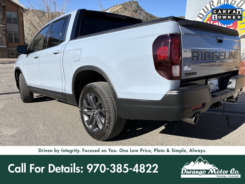 Introducing the 2024 Honda Ridgeline Sport, a versatile and dependable pickup with only 20,149 miles on the odometer. Designed to handle both rugged terrains and everyday tasks, this Ridgeline combines style and functionality. Its sleek body style ensures it stands out on the road while providing ample space for passengers and cargo alike. This model is equipped to tackle your daily adventures with comfort and ease. The Ridgeline's well-appointed interior features modern conveniences to enhance your driving experience. Visit us at Durango Motor Company in Durango, Colorado, to see how this Honda Ridgeline can meet your needs, whether you're commuting to work or heading off-road for the weekend. At Durango Motor Company in Durango, Colorado, our non-commissioned sales team is here to help you find the right vehicle at the right price. If youd like more details, extra photos, or a personalized walk-around video, our team is happy to help. One low Price, Plain and Simple Always!! Peace of mind Vehicle history report Title information Odometer readings Accident data (if applicable) Service history Vehicle usage Recall information (if applicable) Warranty status Free CarFax report A name you can trust Durango Lincoln is dedicated to your satisfaction before, during, and after your purchase. We'll go the extra mile to take care of you.