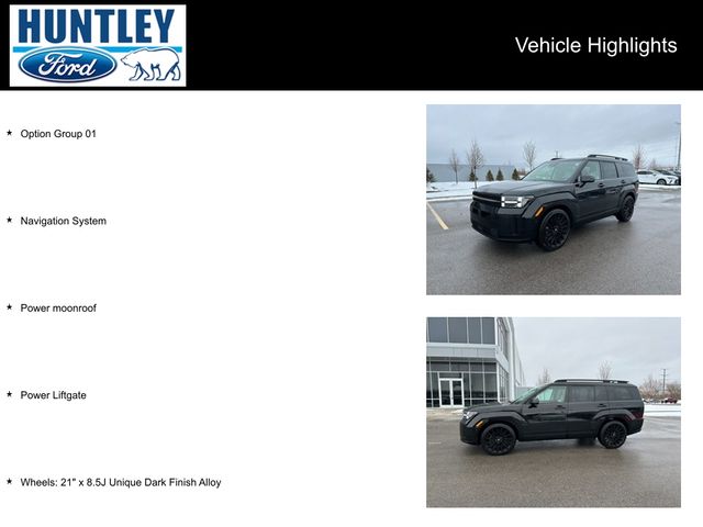 2024 Hyundai Santa Fe AWD, Forest Green/Beige Leather, Navigation System, Option Group 01, Power Liftgate, Power moonroof, Wheels: 21" x 8.5J Unique Dark Finish Alloy. CARFAX One-Owner. Welcome to Huntley Ford Serving Huntley, Elgin, Algonquin, Crystal Lake, Woodstock, Hampshire, Marengo, Dundee & Lake in the Hills Have you been hunting for an all inclusive car dealership that specializes in all things Ford? Then you've arrived at the right place! At Huntley Ford in Huntley, IL, we offer a full range of automotive services that cater to every one of our customer's wishes. Whether you need a brand new Ford, a pre-owned vehicle from any number of manufacturers, help from our finance team, or auto service performed by our team of technicians, we're sure to be your new one-stop shop for all of your automotive needs.