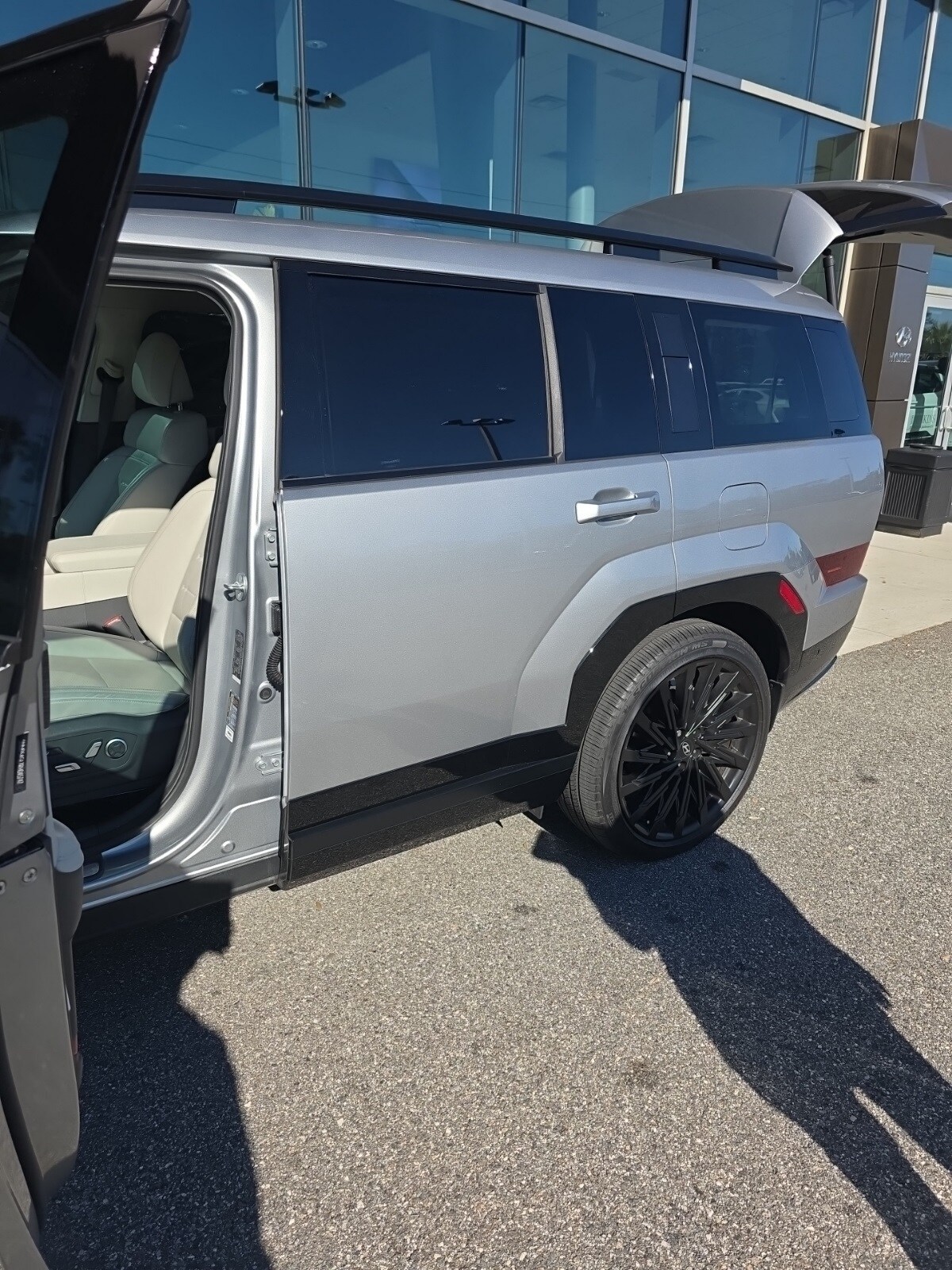 The price does not include tax, tag, license, an electronic filing fee of $449.00, a private tag agency fee of $199.00, and a predelivery service charge of $1199.00. EPA-estimate metric: these are contingent on ideal conditions within a lab. Real-world situations such as carrying passengers or cargo, using climate control, driving style, and ambient temperatures can affect actual metrics. 20/29 City/Highway MPG CARFAX One-Owner. This 2024 Hyundai Santa Fe Calligraphy in Shimmering Silver Pearl features Option Group 01, 12 Speakers, 3rd row seats: bench, Axle Ratio: 3.316, Wheels: 21" x 8.5J Unique Dark Finish Alloy, Heated & Ventilated Front Bucket Seats, Quilted Premium Nappa Leather Seat Trim, Radio: AM/FM/HD Bose Premium Audio System, First Aid Kit, Cargo Net, Wheel Locks, Cargo Organizer, Underbody Protection Plate, 12 Speakers, Apple CarPlay & Android Auto, Auto High-beam Headlights, Exterior Parking Camera Rear, AM/FM radio: SiriusXM, Heads-Up Display, Auto-dimming Rear-View mirror, Ventilated front seats, Variably intermittent wipers, Turn signal indicator mirrors, Trip computer, Traction control, Tilt steering wheel, Telescoping steering wheel, Steering wheel mounted audio controls, Split folding rear seat, Speed-sensing steering, Speed control, Security system, Remote keyless entry, Rear window wiper, Rear window defroster, Rear side impact airbag, Rear anti-roll bar, Rain sensing wipers, Power windows, Power steering, Power passenger seat, Power moonroof, Power driver seat, Power Liftgate.