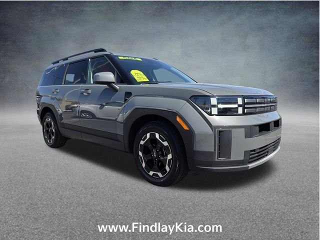 Welcome to Findlay Kia on Sahara Ave in Las Vegas. All of our vehicles are hand picked and inspected for your piece of mind. This Hyundai Santa Fe is equipped with the following options: Option Group 01, Black Artificial Leather, 18" x 7.5J Alloy Wheels, 3rd row seats: bench, 4-Wheel Disc Brakes, 6 Speakers, ABS brakes, Air Conditioning, Alloy wheels, AM/FM radio: SiriusXM, Apple CarPlay & Android Auto, Auto High-beam Headlights, Automatic temperature control, Axle Ratio: 3.316, Brake assist, Bumpers: body-color, Carpeted Floor Mats, Delay-off headlights, Driver door bin, Driver vanity mirror, Dual front impact airbags, Dual front side impact airbags, Electronic Stability Control, Emergency communication system, Exterior Parking Camera Rear, First Aid Kit, Four wheel independent suspension, Front anti-roll bar, Front Bucket Seats, Front Center Armrest, Front dual zone A/C, Front reading lights, Fully automatic headlights, H-Tex Leatherette Seat Trim, Heated door mirrors, Heated Front Bucket Seats, Heated front seats, Illuminated entry, Knee airbag, Leather steering wheel, Low tire pressure warning, Occupant sensing airbag, Outside temperature display, Overhead airbag, Overhead console, Panic alarm, Passenger door bin, Passenger vanity mirror, Power door mirrors, Power driver seat, Power Liftgate, Power steering, Power windows, Radio: AM/FM/HD Display Audio, Rear anti-roll bar, Rear seat center armrest, Rear side impact airbag, Rear window defroster, Rear window wiper, Remote keyless entry, Security system, Speed control, Speed-sensing steering, Split folding rear seat, Spoiler, Steering wheel mounted audio controls, Tachometer, Telescoping steering wheel, Tilt steering wheel, Traction control, Trip computer, Turn signal indicator mirrors, Variably intermittent wipers, and Wheel Locks. Black Artificial Leather. Hampton Gray 2024 Hyundai Santa Fe SEL FWD Shiftronic 2.5L I4. Recent Arrival! Odometer is 10819 miles below market average! 20/29 City/Highway MPG.