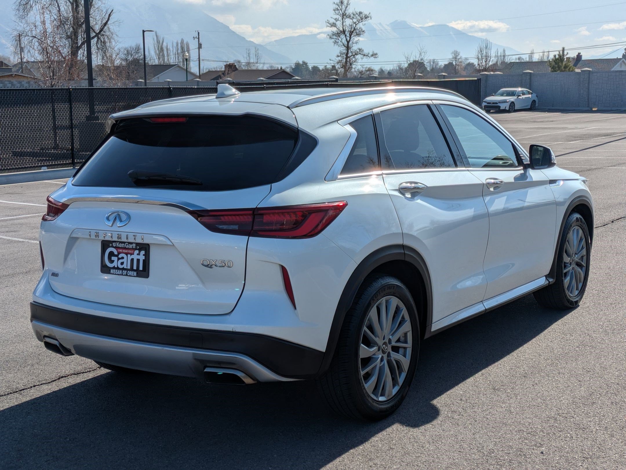 Radiant White 2024 Infiniti QX50 Luxe AWD CVT I4 Garff Care, Clean Carfax. Recent Arrival! 22/28 City/Highway MPG