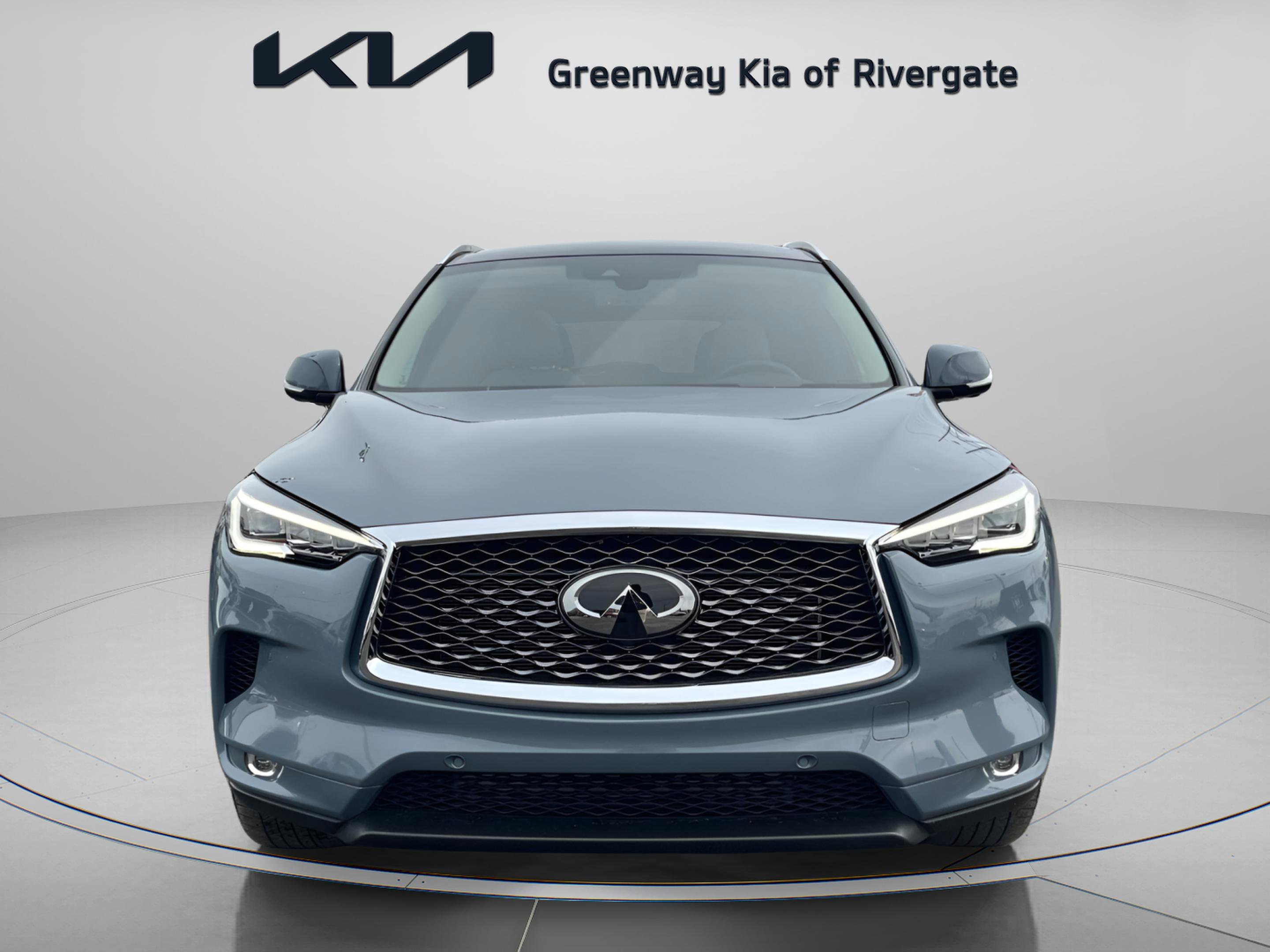2024 Infiniti QX50 (RAV4) Sensory Auto High-beam Headlights, Automatic, Climate Controlled Front Bucket Seats, Delay-off headlights, Exterior Parking Camera Rear, Front Bucket Seats, Front Center Armrest, Front dual zone A/C, Front fog lights, Heads-Up Display, Heated door mirrors, Heated steering wheel, Memory seat, Navigation system: Infiniti InTouch Navigation, Panic alarm, Power door mirrors, Power Liftgate, Power moonroof, Power passenger seat, Radio: Bose Performance Series Audio System, Rain sensing wipers, Remote keyless entry, Security system, Semi-Aniline Leather-Appointed Seat Trim, Speed control, Steering wheel memory, Steering wheel mounted audio controls, Tilt steering wheel, Turn signal indicator mirrors, Wheels: 20 Silver Painted & Machine Finished. CARFAX One-Owner. Your Nashville TN Kia Dealer! GreenwayKiaRivergate.com. Call 615-860-9888 today for your best deal!