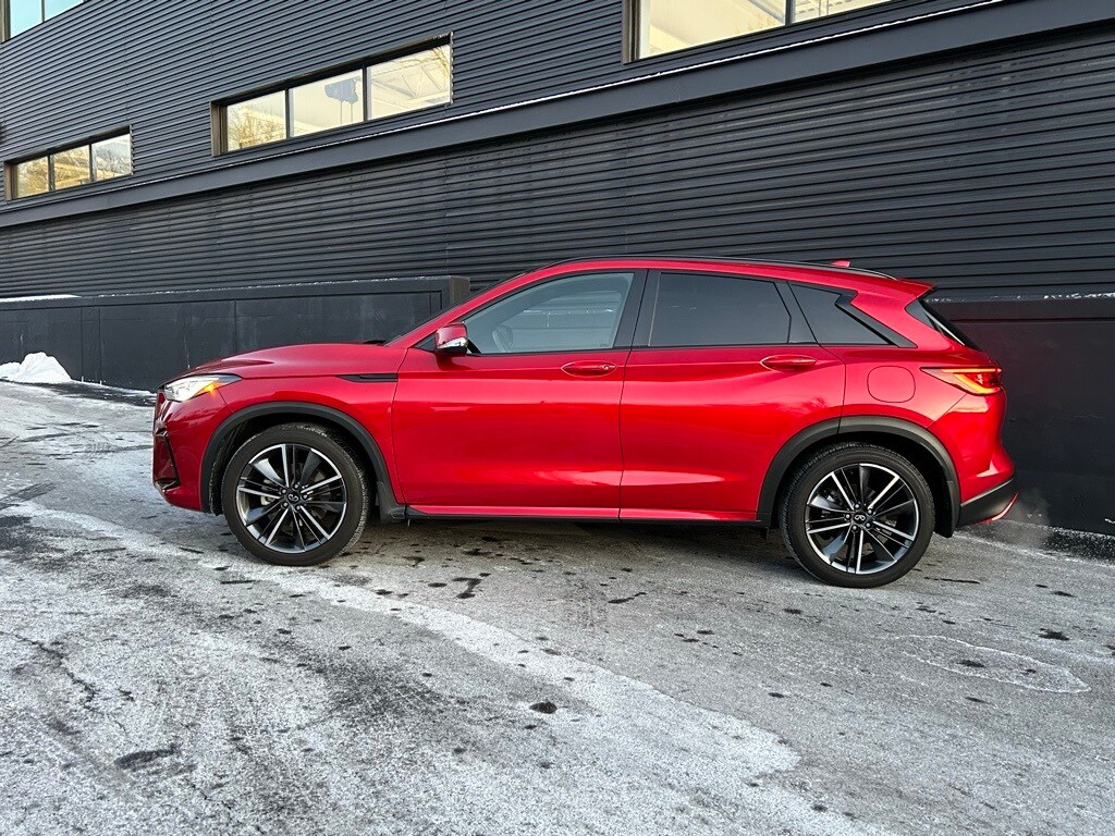 You are looking at a 2024 Infiniti QX50 Sport. It is a one-owner vehicle with only 407 miles. The options include: Motion activated rear lift-gate, Dual zone automatic climate control, Climate controlled semi leather-aniline, appointed perforated, front seating, power, adjustable, front seats, driver, power, lumbar, heated auto folding outside mirrors, rear door, alert, wireless, charging pad, panoramic moonroof, with power, sunshade, black roof, rails, memory, driver, seat, and mirror, Black exterior accents, port front facia, Bose premium audio with 12 speakers, Bose metallic speaker grills on tweeters, predictive forward collision warning. This vehicle is being sold with a Balance of Factory Warranty until 12/09/2028 or 48,000 Miles, whichever occurs first. Please feel free to call or email us with any of your questions regarding the vehicle, or stop in, and find out why Porsche Main Line was awarded top Premier dealer in the U.S. An award given to the dealer who exhibits uncompromising excellence in every phase of business. A title distinguishing us as the best of the best.