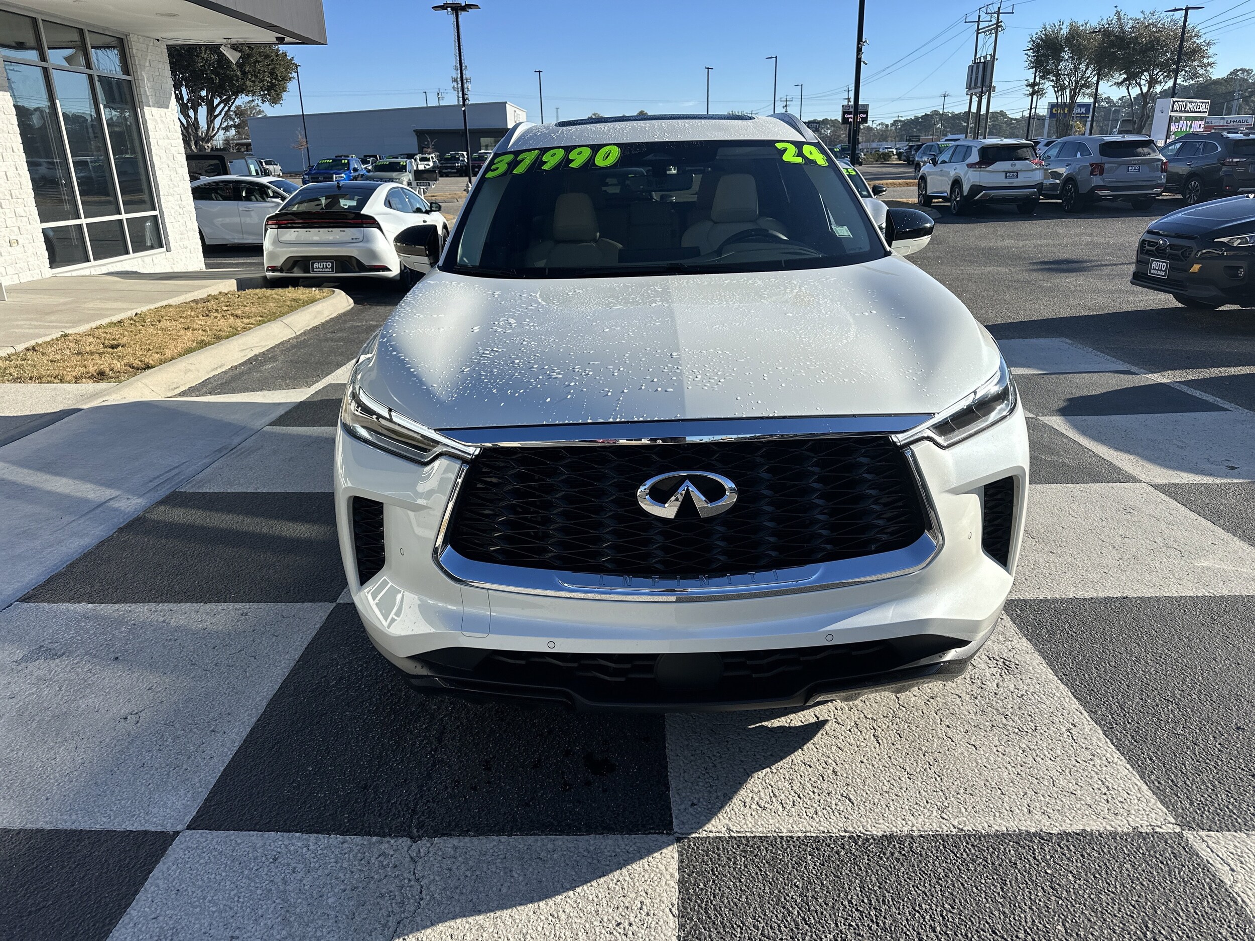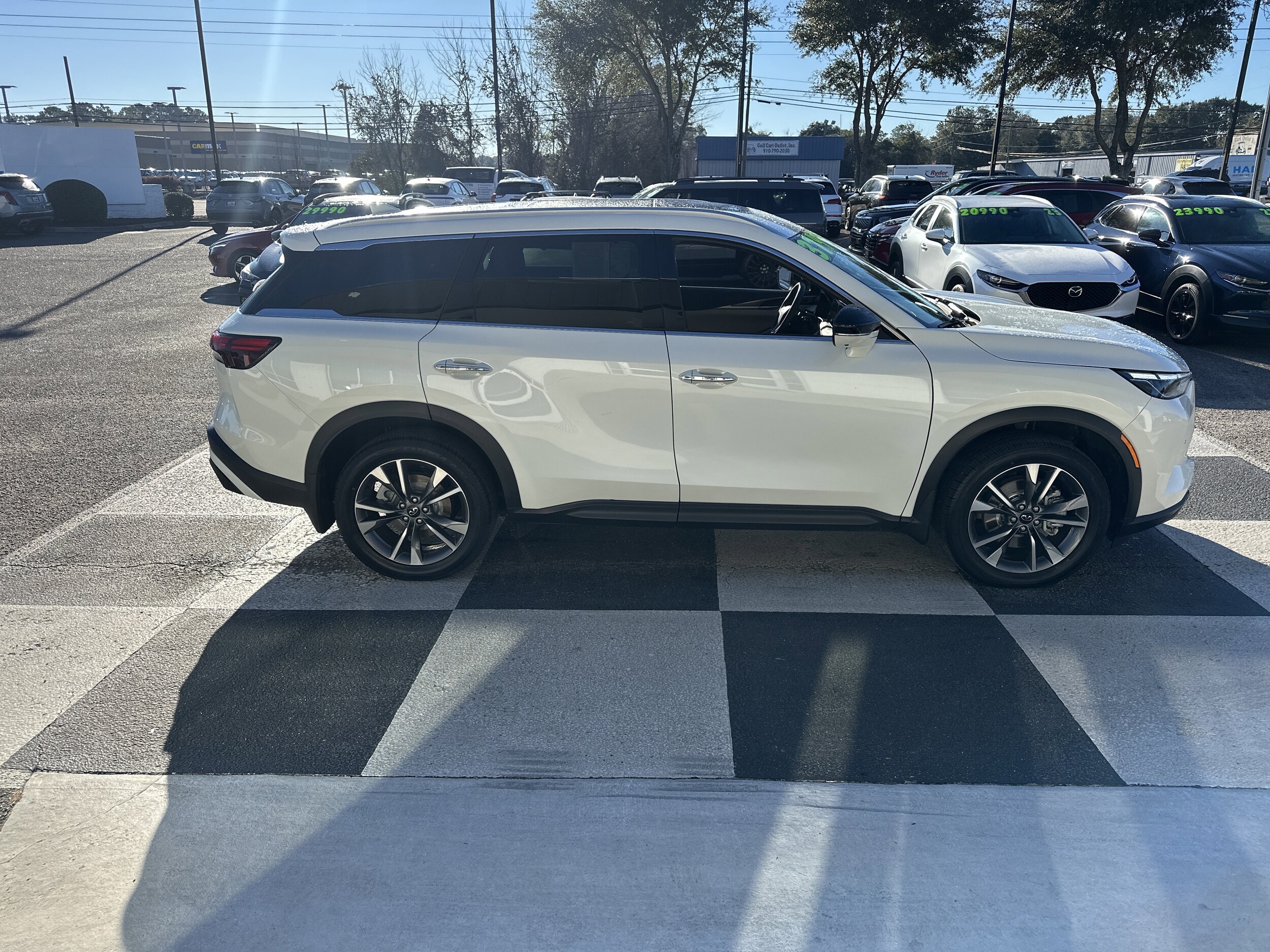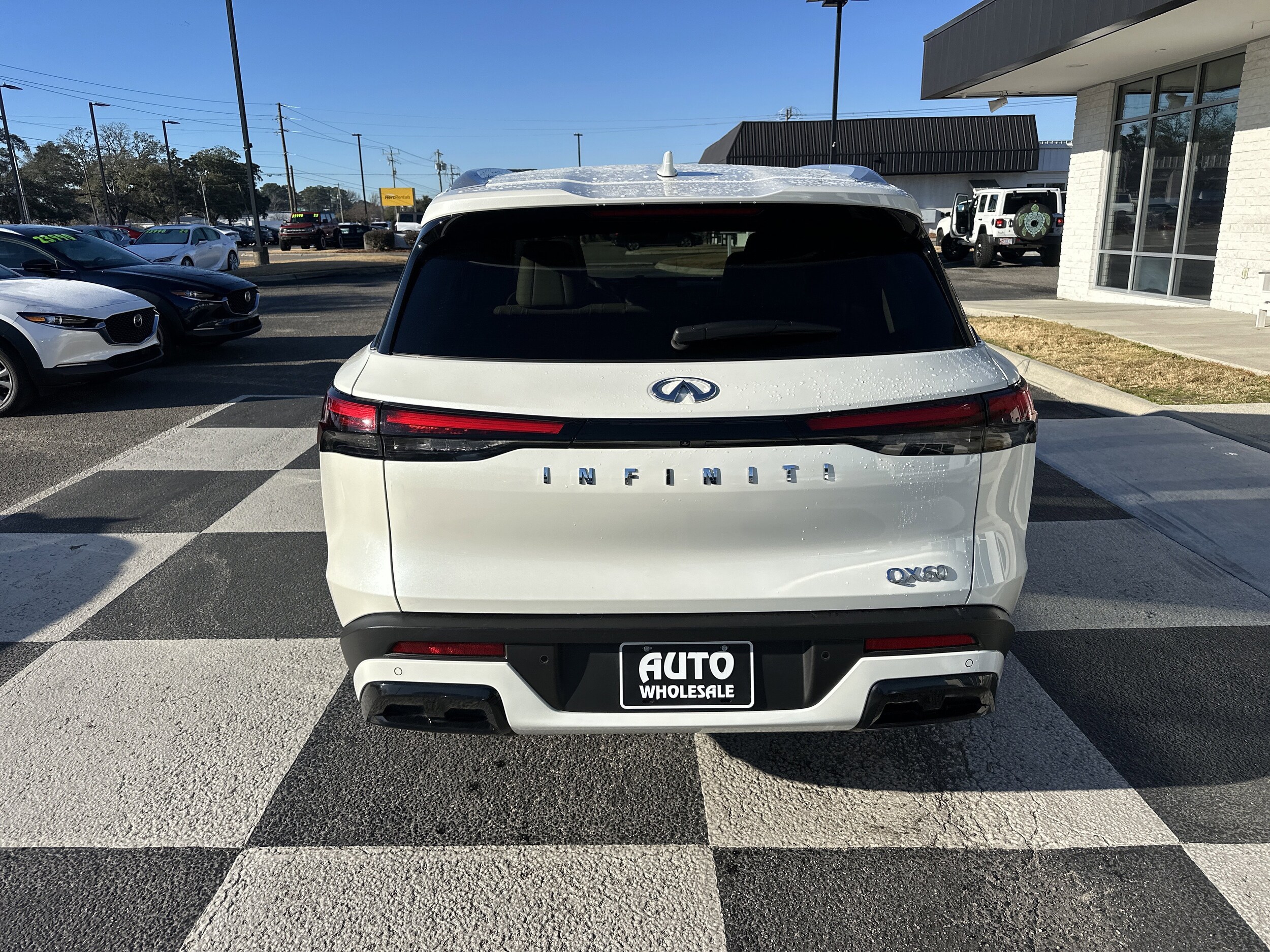 Only 22,179 Miles! Boasts 26 Highway MPG and 21 City MPG! This INFINITI QX60 delivers a Premium Unleaded V-6 3.5 L/213 engine powering this Automatic transmission. Sandstone, leather-appointed seating surfaces, Majestic White, [S55] Literature Kit. This INFINITI QX60 features the following options: [L11] Floor Mats with Bench Seats on 3rd Row Tray, [B92] Splash Guards (Set of 4), wireless phone connectivity, window grid and roof mount diversity antenna, valet function, turn-by-turn navigation directions, trip computer, transmission: 9-Speed Automatic -inc: manual-mode paddle shifters, transmission w/driver selectable mode and oil cooler, tires: P255/50R20 all-season. Visit Us Today. Come in for a quick visit at Auto Wholesale, 6003 Market St, Wilmington, NC 28405 to claim your INFINITI QX60!