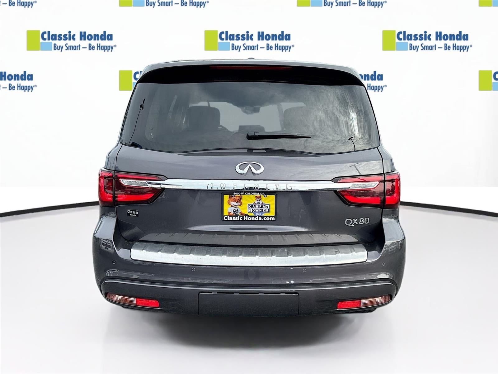 Thank you for choosing Classic Honda, this Anthracite Gray 2024 INFINITI QX80 LUXE is a great choice! No Accidents! One Owner! This QX80 has the following features: Forward collision mitigation - Forward thinking. You look away for just a second and suddenly the vehicle in front of you has stopped. That's when the forward collision mitigation system comes to life. When it senses an impending impact, it will activate a combination of features to help prevent or reduce the severity of an accident. Forward collision mitigation is always looking ahead. Pedestrian impact prevention - An extra step toward safety. Pedestrians don't always stop, look, and listen, but with Pedestrian Impact Prevention, your vehicle is equipped to better see them and avoid them. This system constantly monitors the road ahead to identify and track pedestrians. It projects that image to an interior display screen, AND should an impact become likely, Pedestrian impact prevention takes steps to avoid a collision. Apple CarPlay/Android Auto smart device wireless mirroring. We price our cars, not our Customers. Our Best Price is clearly marked on every vehicle, saving you time and money by taking the stress of negotiating out of the car buying experience. You can't buy the wrong car. Exchange or return your vehicle within 5-days / 300-miles for a full refund. New vehicle pricing excludes dealer installed accessories. At Classic Honda, all of our vehicles are clearly marked with our haggle-free best price and our sales associates are commission-free. That means they'll help you find the car that fits you best, not the one that earns them the biggest commission check. Every vehicle we sell comes with a guaranteed peace of mind. Unhappy with your purchase? Please bring it back if you want.