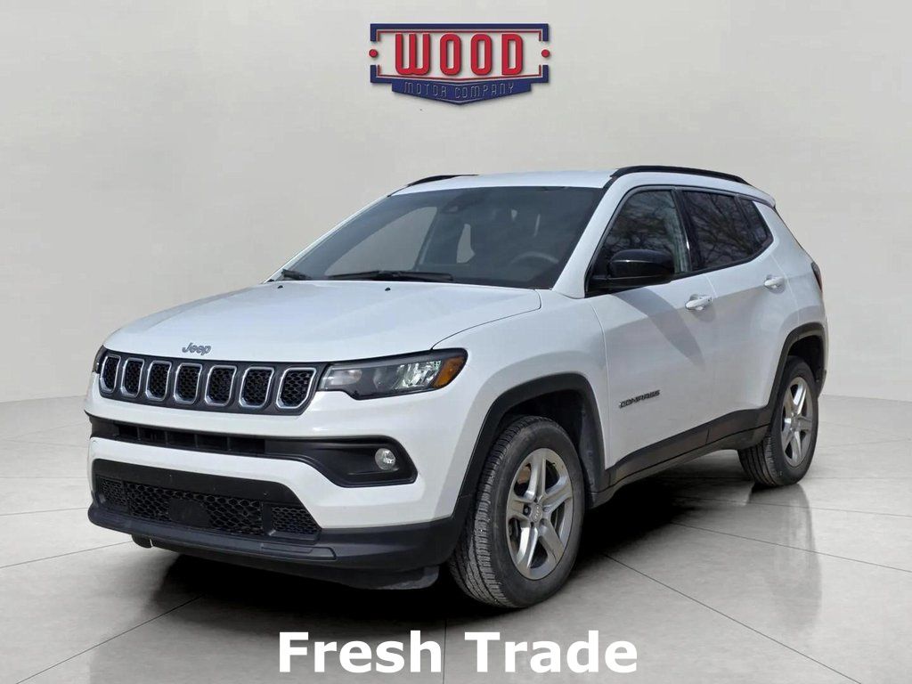 Bright White Clearcoat 2024 Jeep Compass Latitude 4WD 8-Speed Automatic 2.0L I4 DOHC. A solid name you can trust... Wood Motor. Recent Arrival! 24/32 City/Highway MPG.