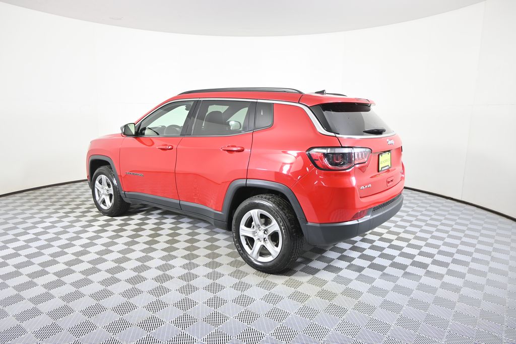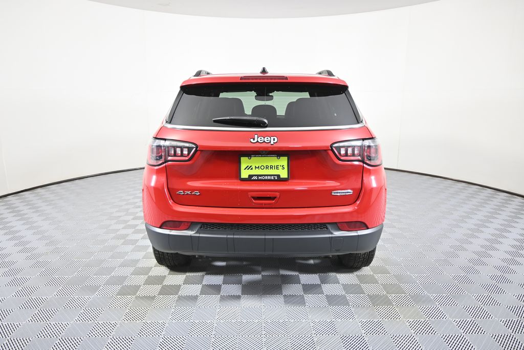 Carfax One-Owner. Full Dealer Inspection. This 2024 Jeep Compass Latitude 4x4 in Redline Pearl-Coat offers a modern compact SUV design with a balance of efficiency, capability, and everyday functionality. The exterior features LED reflector headlamps, heated mirrors, and subtle bright accents that complement the bold red finish while maintaining a clean and practical appearance. Powered by a 2.0L turbocharged I4 engine paired with an 8-speed automatic transmission, this Compass delivers responsive performance with improved efficiency. The 4x4 system combined with Selec-Terrain traction management allows it to adapt to changing road and weather conditions, making it well-suited for year-round driving. Inside, the cabin features premium cloth and vinyl bucket seats with a straightforward, functional layout. The Uconnect 5 system is displayed on a 10.1-inch touchscreen and includes Apple CarPlay and Android Auto compatibility, hands-free connectivity, and multiple USB inputs throughout the cabin. The rear 60/40 split-folding seat adds flexibility for cargo and passenger needs, while the Jeep Clean Air System contributes to interior comfort. Safety and driver assistance features include Full-Speed Forward Collision Warning Plus, Blind Spot Monitoring with Cross Path Detection, Active Lane Management, pedestrian and cyclist emergency braking, drowsy driver detection, and a rear back-up camera. Additional features such as push-button start, remote entry, and automatic headlamps support daily convenience. Discover the difference when you purchase at Morrie's Forest Lake Chrysler Dodge Jeep & RAM! Our dedicated Sales Staff is driven by customer delight and overall unit sales, ensuring you experience unparalleled service, no matter the vehicle you choose. Embrace the hassle-free buying process with our commission-free sales team and Morrie's Best Price guarantee. Get More with Morrie's.