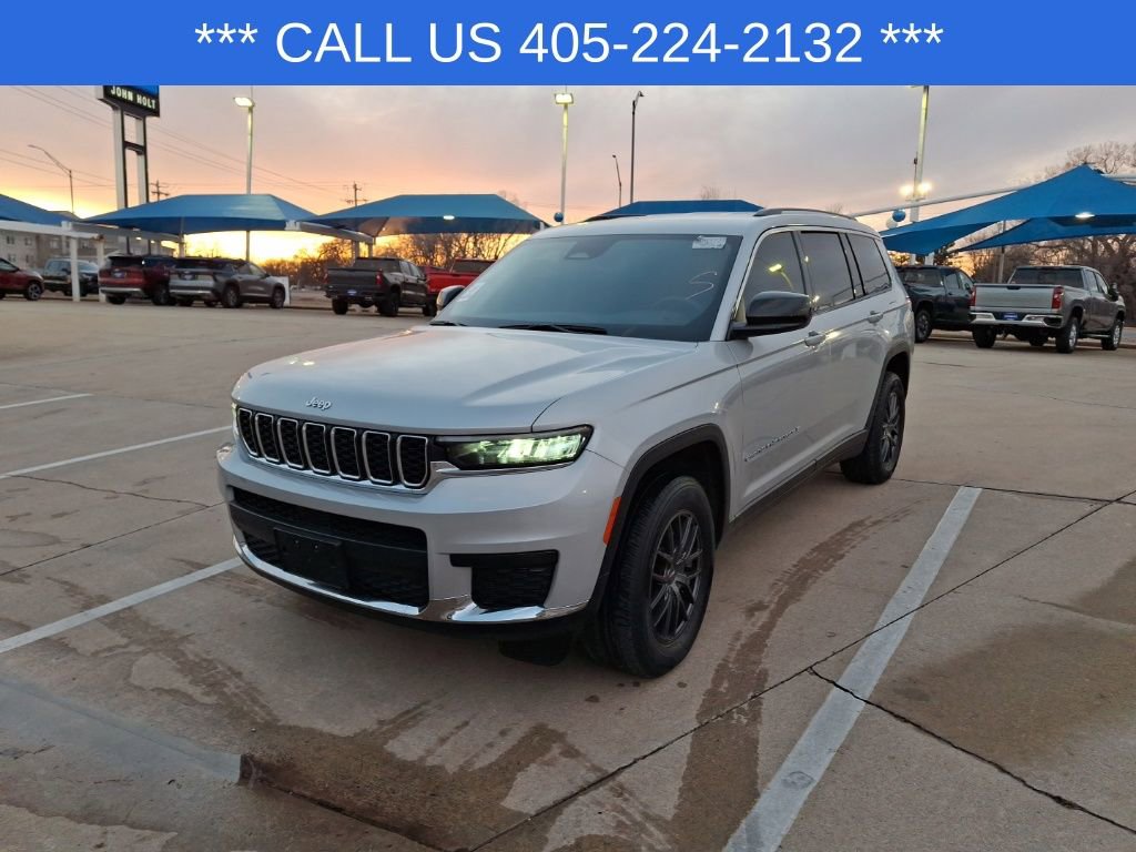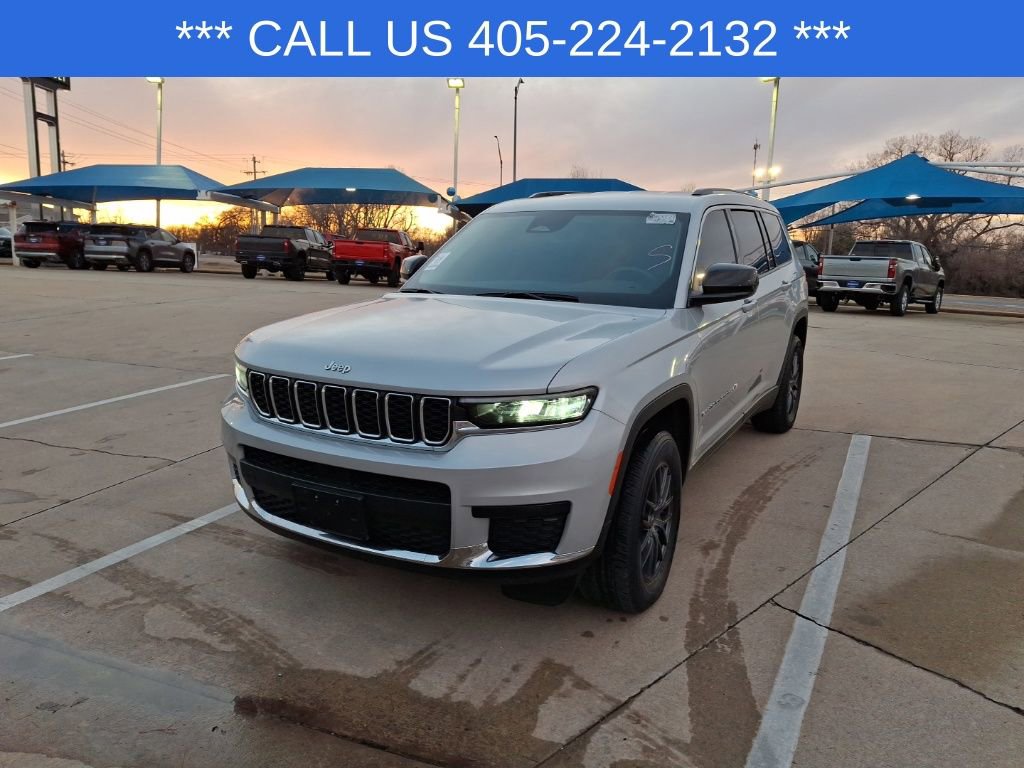 Silver Zynith 2024 Jeep Grand Cherokee L Laredo 4D Sport Utility CARFAX One-Owner. 4WD 8-Speed Automatic 3.6L V6 24V VVT. Manager Special, Clean CarFax, One Owner CarFax, Bluetooth, Backup Camera, Brakes Plus, 3rd row seats: split-bench, 4-Wheel Disc Brakes, 6 Speakers, ABS brakes, Air Conditioning, Alloy wheels, Anti-whiplash front head restraints, Automatic temperature control, Brake assist, Bumpers: body-color, Cloth Seats, Compass, Delay-off headlights, Driver door bin, Driver vanity mirror, Dual front impact airbags, Dual front side impact airbags, Electronic Stability Control, Emergency communication system, Four wheel independent suspension, Front anti-roll bar, Front Bucket Seats, Front Center Armrest w/Storage, Front dual zone A/C, Front reading lights, Fully automatic headlights, Heated door mirrors, Illuminated entry, Knee airbag, Low tire pressure warning, Manual Fold Seatbacks, Normal Duty Suspension, Occupant sensing airbag, Outside temperature display, Overhead airbag, Overhead console, Panic alarm, ParkView Rear Back-Up Camera, Passenger door bin, Passenger vanity mirror, Power door mirrors, Power driver seat, Power steering, Power windows, Quick Order Package 23A Laredo, Radio data system, Radio: Uconnect 5 w/8.4 Display, Rear air conditioning, Rear anti-roll bar, Rear reading lights, Rear window defroster, Rear window wiper, Reclining 3rd row seat, Remote keyless entry, Security system, Speed control, Speed-Sensitive Wipers, Split folding rear seat, Spoiler, Steering wheel mounted audio controls, Tachometer, Telescoping steering wheel, Tilt steering wheel, Traction control, Trip computer, Variably intermittent wipers, Voltmeter.