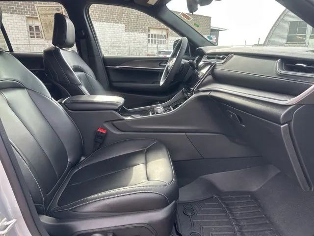 This used 2024 Jeep Grand Cherokee Limited presents a compelling blend of luxury, technology, and capability, making it an ideal choice for drivers seeking a versatile SUV. With only 5,700 miles on the odometer, this vehicle boasts a sleek Silver Zynith exterior complemented by a sophisticated Global Black interior. Powered by a robust 3.6-liter V6 engine, it delivers 293 horsepower and 260 lb-ft of torque, paired with an 8-speed automatic transmission and full-time 4WD. The Grand Cherokee Limited is packed with advanced features such as adaptive cruise control, Apple CarPlay, a backup camera, blind spot monitor, Bluetooth connectivity, collision warning, cross traffic alert, heated seats, keyless entry, lane keep assist, memory seats, navigation, push start, rear heated seats, satellite radio readiness, a tow package, and Wi-Fi hotspot, all designed to enhance your driving experience and convenience. This used Jeep Grand Cherokee offers a suite of safety and security features aimed at providing peace of mind on every journey. It includes automatic emergency braking at the rear, rear check seat reminder, dual front knee airbags, four-wheel ABS brakes system for optimal stopping power. Emergency braking preparation ensures the vehicle is ready to respond in critical moments, and the auto-locking power door locks enhance security. Brake drying improves wet-weather braking performance, and the electronic parking brake with automatic off function simplifies parking and prevents accidental rolling.