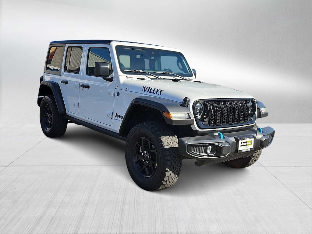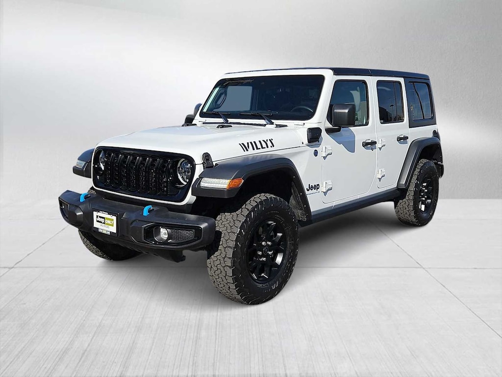 Take your adventures further with this 2024 Jeep Wrangler Willys 4xe. One Owner, Clean CARFAX, No Accidents. This plug-in hybrid Wrangler combines legendary Jeep capability with modern efficiency and instant electric torque. Powered by a turbocharged engine paired with Jeep’s advanced 4xe hybrid system and smooth automatic transmission, it delivers impressive performance both on the road and off the beaten path. The Willys trim adds a rugged, trail-ready look with aggressive all-terrain tires, Willys badging, heavy-duty suspension, and Jeep’s capable 4x4 system designed to handle challenging terrain with confidence. Built for adventure, it also offers the iconic removable top and doors, giving you the open-air freedom Jeep is known for. Inside, you’ll find modern technology and comfort including a touchscreen infotainment system, Apple CarPlay, Android Auto, Bluetooth connectivity, and a backup camera to keep you connected wherever you go. With one previous owner and a clean CARFAX showing no accident history, this Wrangler Willys 4xe has been well maintained and is ready for its next adventure. Don’t miss the opportunity to own this capable, efficient, and iconic Jeep. Schedule your test drive today.