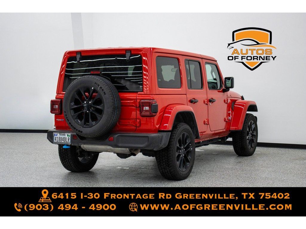 Firecracker Red Clearcoat 2024 Jeep Wrangler Sahara 4xe 4WD 8-Speed Automatic 2.0L I4 DOHC Bluetooth, Leather, Back Up Camera, Passed Inspection, Apple CarPlay / Android Auto, 2.0L I4 DOHC, 12.3" Touchscreen Display, 4G LTE Wi-Fi Hot Spot, 8 Speakers, Alloy wheels, AM/FM radio: SiriusXM, Apple CarPlay, Apple CarPlay/Android Auto, Automatic temperature control, Body Color 3-Piece Hard Top, Brake assist, Cloth Low-Back Bucket Seats, Delay-off headlights, Disassociated Touchscreen Display, Electronic Stability Control, Emergency communication system: Jeep Connect, Freedom Panel Storage Bag, Front Bucket Seats, Front Center Armrest w/Storage, Front dual zone A/C, Front fog lights, Front License Plate Bracket, Fully automatic headlights, Google Android Auto, Heated door mirrors, Heated front seats, Heated steering wheel, Integrated Center Stack Radio, Integrated roll-over protection, Integrated Voice Command w/Bluetooth, Low tire pressure warning, Occupant sensing airbag, ParkView Rear Back-Up Camera, Quick Order Package 29P Sahara, Radio: Uconnect 5 w/12.3" Display, Rear Window Defroster, Rear Window Wiper/Washer, Remote keyless entry, Split folding rear seat, Sport Suspension, Steering wheel mounted audio controls, Traction control, Variably intermittent wipers, Wheels: 20" x 8" Painted Black Aluminum.