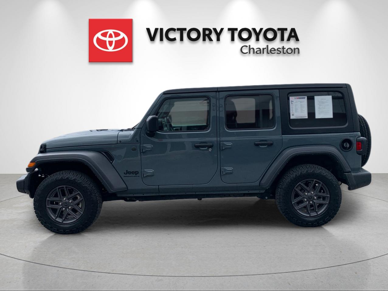This 2024 Jeep Wrangler Sport S vehicle was recently traded in by our store here in Charleston on a Grand Highlander. This Beauty has had and passed an extensive 182 Multi-Point Inspection conducted by our factory certified technicians. All necessary services have been done for the appropriate mileage intervals. This 2024 Jeep Wrangler Sport S vehicle comes with two sets of keys, Clean CARFAX. CARFAX One-Owner. This Beauty has had and passed an extensive Multi-Point Inspection conducted by our factory certified technicians including Fresh Oil and Filter, Nitro-fill in all her tires and all necessary services have been done for the appropriate mileage interval. We have also reconditioned this vehicle inside and out, to provide you with a near-new vehicle. Buy with confidence as each of our Pre-Owned Vehicles come equipped with a 90-Day/3000 Mile warranty as well as Car Doc, our exclusive maintenance and membership program. The included Car Doc Program comes with 6 Complimentary Oil Changes and 6 Complimentary Tire Rotations for the first TWO years of car ownership. Also, this vehicle is available to upgrade to a 3 Year or 5 Year Car Doc along with other perks to give you peace of mind when it comes to your driving experience. It's just what the doctor ordered. Conveniently located at 1905 Patrick St Plaza, Charleston. Just off I-64. Whether you have good credit, bad credit or no credit get pre-approved today at: https://www.victorytoyotacharleston.com/finance/get-pre-approved/ This vehicle won't last long at this price! We are a large used car dealer.