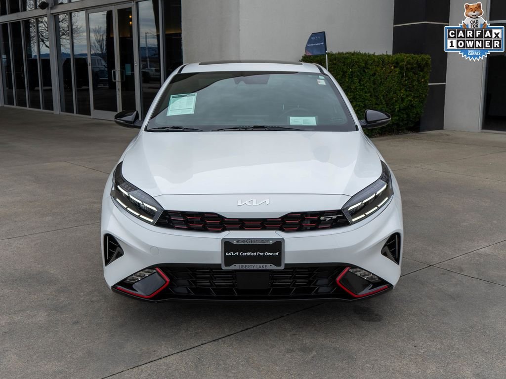 Recent Arrival! Carfax One-Owner. Clean Carfax. Snow White Pearl 2024 Kia Forte GT FWD 7-Speed Automatic 1.6L I4 Turbo Odometer is 9834 miles below market average! 27/35 City/Highway MPG 10-Way Power Driver's Seat, 18" x 7.5J Alloy Wheels, 4-Wheel Disc Brakes, 6 Speakers, ABS brakes, Air Conditioning, Alloy wheels, AM/FM radio: SiriusXM, Apple CarPlay & Android Auto, Auto High-beam Headlights, Automatic temperature control, Brake assist, Bumpers: body-color, Cloth & SynTex Seat Trim, Delay-off headlights, Driver door bin, Driver vanity mirror, Dual front impact airbags, Dual front side impact airbags, Electronic Stability Control, Emergency communication system, Exterior Parking Camera Rear, Four wheel independent suspension, Front anti-roll bar, Front Bucket Seats, Front Center Armrest, Front dual zone A/C, Front fog lights, Front reading lights, Fully automatic headlights, GT2 Package, harman/kardon Premium Audio, Heated & Ventilated Front Seats, Heated door mirrors, Illuminated entry, Leather Shift Knob, Leather steering wheel, LED Interior Lighting, Low tire pressure warning, Navigation System, Occupant sensing airbag, Outside temperature display, Overhead airbag, Overhead console, Panic alarm, Parking Distance Warning-Reverse, Passenger door bin, Passenger vanity mirror, Power door mirrors, Power steering, Power Sunroof, Power windows, Radio data system, Radio: 10.25" Display Audio, Rear anti-roll bar, Rear seat center armrest, Rear window defroster, Remote keyless entry, Security system, Speed control, Split folding rear seat, Spoiler, Sport steering wheel, Steering wheel mounted audio controls, SynTex Seat Trim, Tachometer, Telescoping steering wheel, Tilt steering wheel, Traction control, Trip computer, Turn signal indicator mirrors, Variably intermittent wipers.