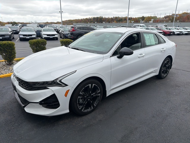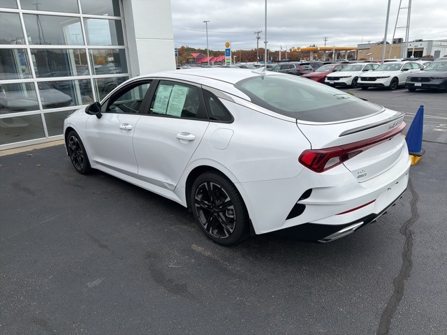 Bluetooth, Backup Camera, Keyless Entry, Apple CarPlay. CARFAX One-Owner. 2024 Kia K5 GT-Line Glacial White Pearl. Priced below KBB Fair Purchase Price! Odometer is 5031 miles below market average! 27/37 City/Highway MPG. Equipped with GT-Line Premium Package (Forward Collision Avoidance-Assist, Highway Driving Assist, LED Projection Headlamps, and Smart Cruise Control w/Stop & Go), 4-Wheel Disc Brakes, 6 Speakers, ABS brakes, Air Conditioning, Alloy wheels, AM/FM radio: SiriusXM, Apple CarPlay & Android Auto, Auto High-beam Headlights, Automatic temperature control, Brake assist, Bumpers: body-color, Carpeted Floor Mats, Cloth/SynTex Seat Trim, Delay-off headlights, Driver door bin, Driver vanity mirror, Dual front impact airbags, Dual front side impact airbags, EC Mirror w/Homelink, Electronic Stability Control, Four wheel independent suspension, Front anti-roll bar, Front Bucket Seats, Front Center Armrest, Front dual zone A/C, Front fog lights, Front reading lights, Fully automatic headlights, Heated door mirrors, Heated Front Bucket Seats, Heated front seats, Illuminated entry, Knee airbag, Leather steering wheel, Low tire pressure warning, Navigation System, Occupant sensing airbag, Outside temperature display, Overhead airbag, Overhead console, Panic alarm, Passenger door bin, Passenger vanity mirror, Power door mirrors, Power driver seat, Power steering, Power windows, Radio data system, Radio: AM/FM/MP3 Audio System, Rear anti-roll bar, Rear Bumper Applique, Rear seat center armrest, Rear side impact airbag, Rear window defroster, Remote keyless entry, Security system, Speed control, Speed-sensing steering, Split folding rear seat, Spoiler, Sport steering wheel, Steering wheel mounted audio controls, Tachometer, Telescoping steering wheel, Tilt steering wheel, Traction control, Trip computer, Turn signal indicator mirrors, Variably intermittent wipers, and Wheels: 18" Gloss Black Machined Finish Alloy.