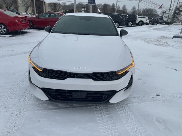 CARFAX One-Owner. Glacial White Pearl 2024 Kia K5 GT-Line FWD 8-Speed Automatic 1.6L I4 DGI Turbocharged DOHC 16V LEV3-ULEV70 180hp 27/37 City/Highway MPG