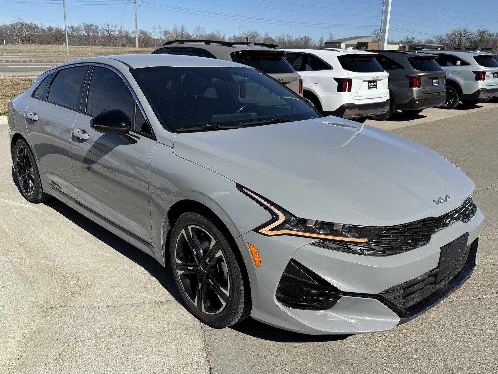 If you're in the market for a vehicle and looking to do business with a nearby car dealership that values honesty, transparency while providing top-notch customer service, choose Kia of Manhattan. Our long-tenured staff is here to help you buy or lease the Kia model that you want at a price you will love. This Wolf Gray 2024 Kia K5 GT-Line with Black interior is ready to take home and equipped with the following packages and features. The cruise control system gets information from GPS navigation data so it knows when to slow down for curves. The vehicle is equipped with a system that senses, and then prepares, the vehicle and/or occupants, for an impending forward collision. The vehicle is equipped with forward sensors such as radar, laser, or cameras which can detect a possible collision in left hand turning situations. The vehicle constantly monitors the roadway in front of the vehicle and identifies and tracks pedestrians on an interior display. If the system determines a likely impact, it will automatically take preventative steps to avoid hitting the pedestrian. The vehicle is equipped with a camera that displays an image of the area behind the vehicle on an interior display. An active lane departure system alerts the driver of unintended movement of the vehicle out of a designated traffic lane and automatically maintains the vehicle's position within that lane. Without the need for a manufacturer specific app to be installed on the smart device, the vehicle infotainment system can access and control functions of a smart device physically plugged-into the vehicle. Mobile devices can wirelessly connect to the internet through the vehicle's private mobile network. Whether you are waiting for your vehicle to get serviced, picking up a part for your vehicle, or stopping by to check out a new vehicle for yourself, we offer a wide range of amenities. Don't miss out! Stop in today at 8223 S Port Dr Manhattan KS 66502 or call 7852367002.