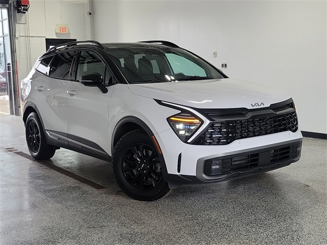 Glacier White Pearl/Ebony Black Roof 2024 Kia Sportage X-Pro Prestige AWD 8-Speed Automatic I4. Local trade, you won't find a nicer one, immaculate condition, Sportage X-Pro Prestige, 4D Sport Utility, I4, 8-Speed Automatic, AWD, Glacier White Pearl/Ebony Black Roof, Black Artificial Leather, Ebony Black Roof, Navigation System, Power Liftgate, Power moonroof, Wheels: 17" Matte Black Alloy, X-Pro Two-Tone Roof Package. Recent Arrival! 23/30 City/Highway MPG.
